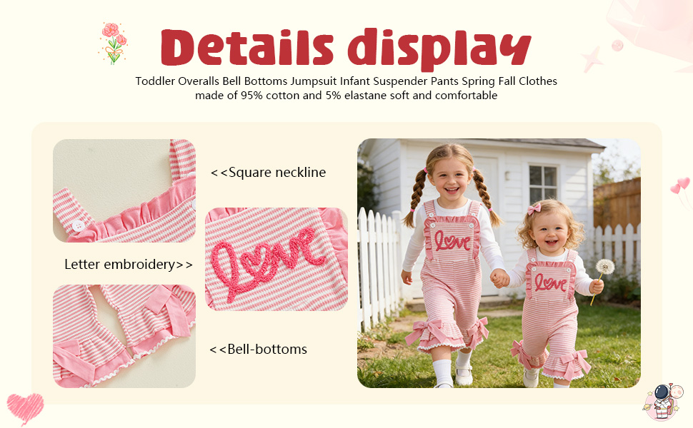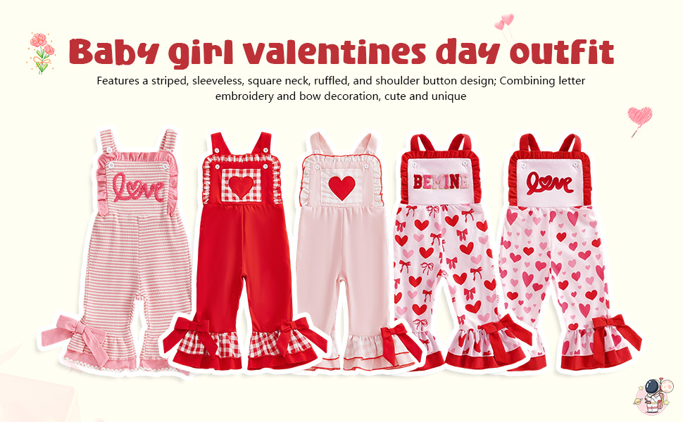 المواد: ملابس عيد الحب للفتيات الصغيرات مصنوعة من 95% قطن و5% إيلاستين ناعم ومريح