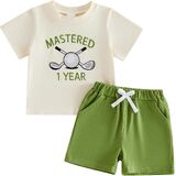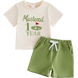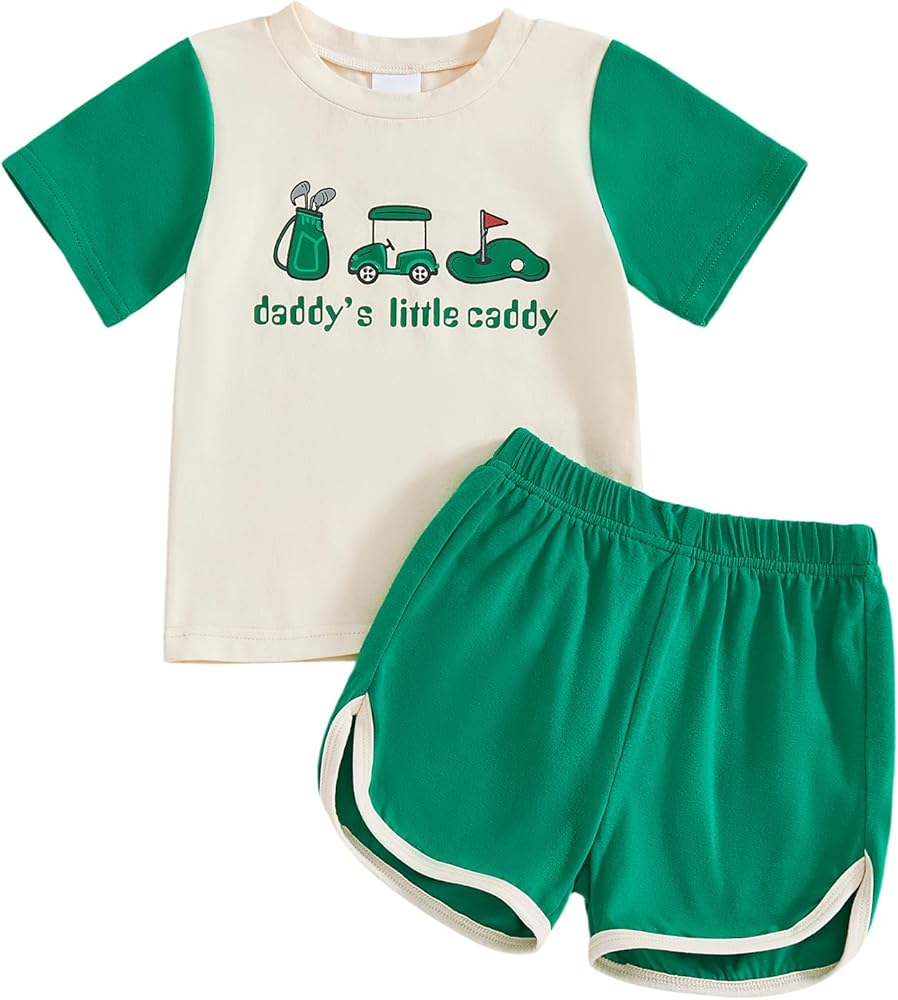 التصميم: مجموعة قصيرة لطيفة للأولاد الصغار، ملابس جولف للأولاد الصغار، أكمام قصيرة ورقبة دائرية، تي شيرتات مطبوعة بحروف مطرزة للجولف، زوج مع شورت بلون موحد، خصر مرن، جيبين، ملابس جولف للرضع، عصرية ولطيفة