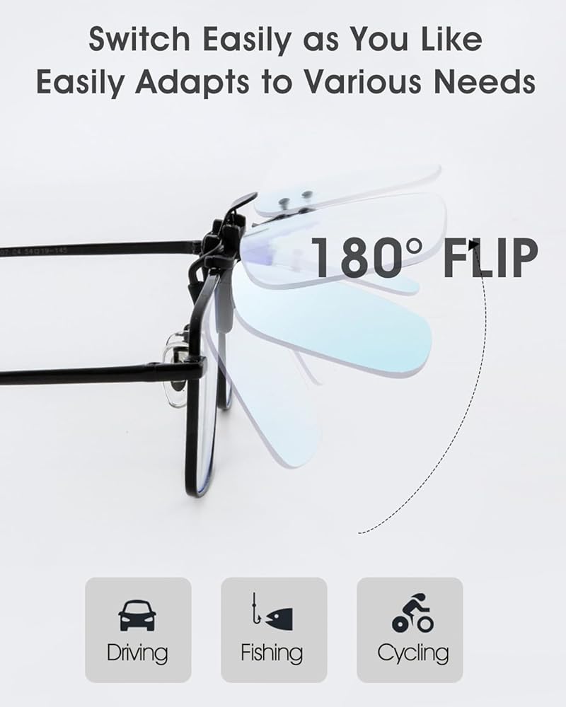 ✪ Durable & Functional Assurance: Crafted with robust alloy clips and soft silicone grips, these lenses secure firmly without scratching your eyewear. Hydrophobic lens coating ensures clear vision even under rain or sweat, while precision-cut lenses maintain optical clarity and visual accuracy throughout the day.