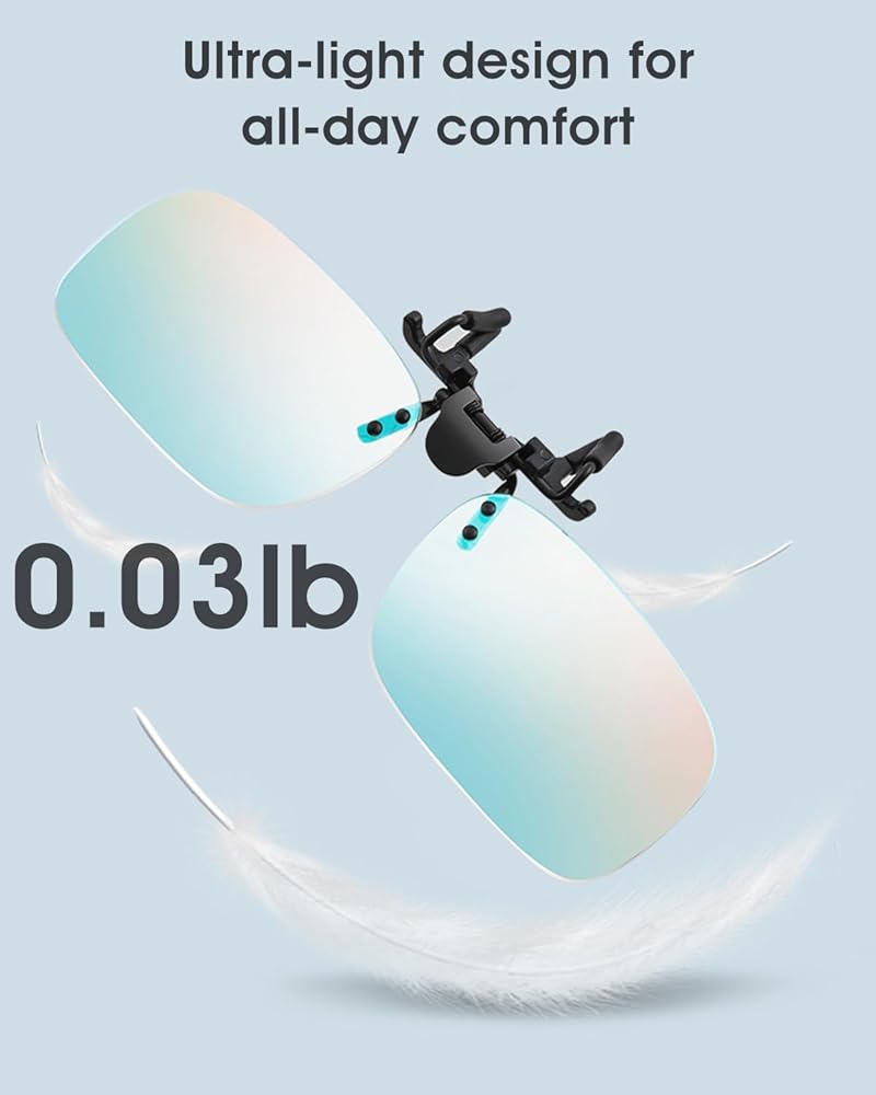 ✪ Lightweight & Ultra Comfortable: Weighing only 14 grams, these feather-light clip-on lenses attach effortlessly to your existing eyewear, providing exceptional comfort without added bulk. Experience day-long wearability—forget they're even there while enhancing your color vision clarity.