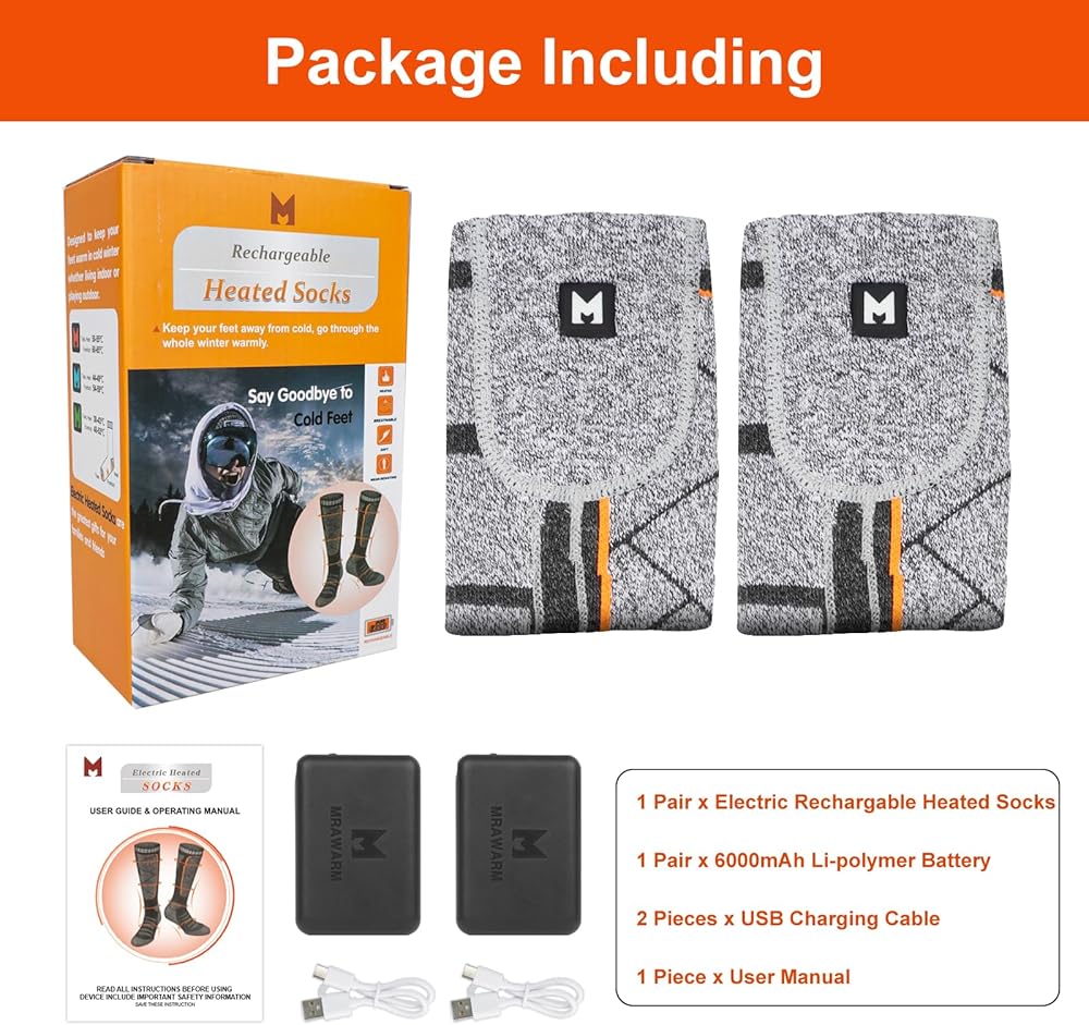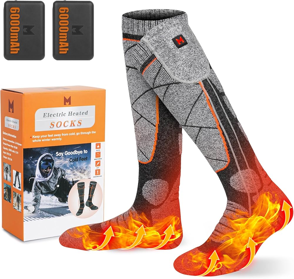 Heated Socks, 5V 6000mAh Rechargeable Heated Socks for Men & Women, Electric Socks with 3 Heating Levels for Winter, Skiing, Hunting, Camping, Hiking, Cycling, Outdoor Work
