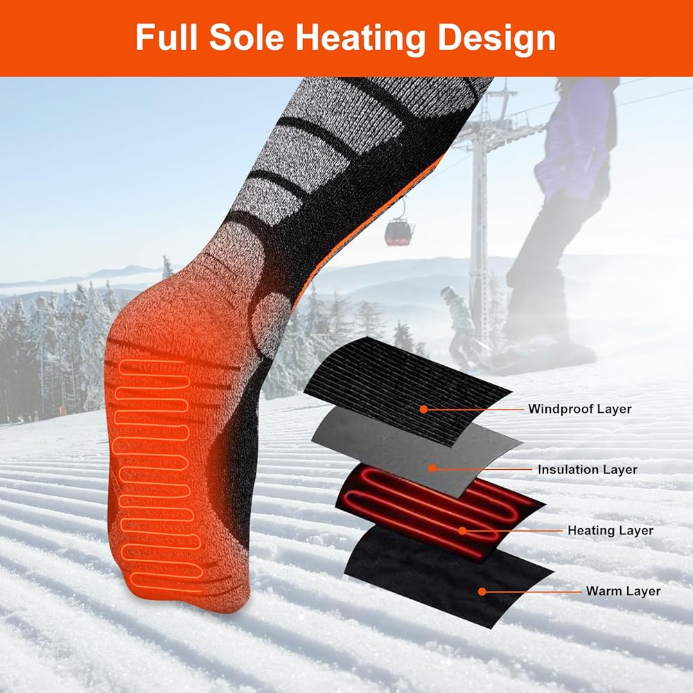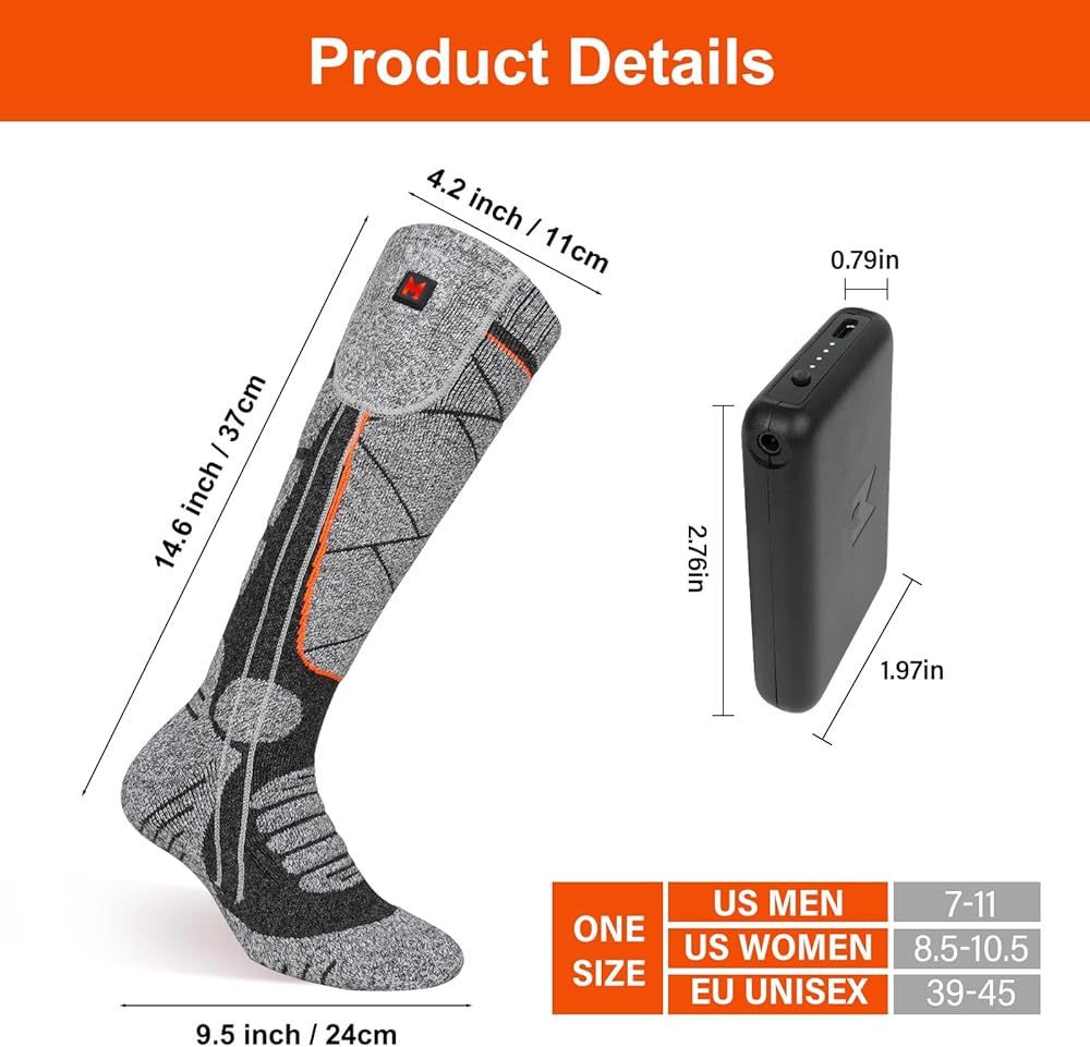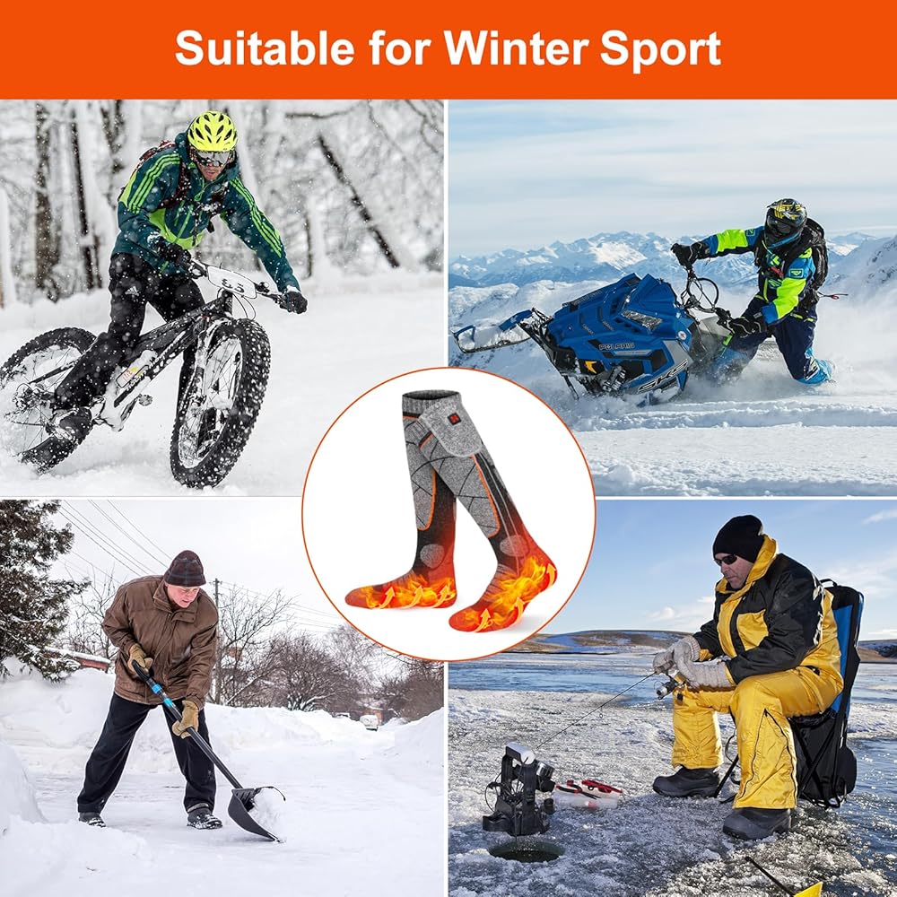 【Warm Winter Gift】Electric heated socks are perfect for winter outdoor and indoor activities. Whether you are skiing, hiking, motorcycling, camping, hunting, fishing or just relaxing at home, they are ideal and heartwarming gifts for your loved ones on Valentine's Day, Thanksgiving, Christmas and New Year.