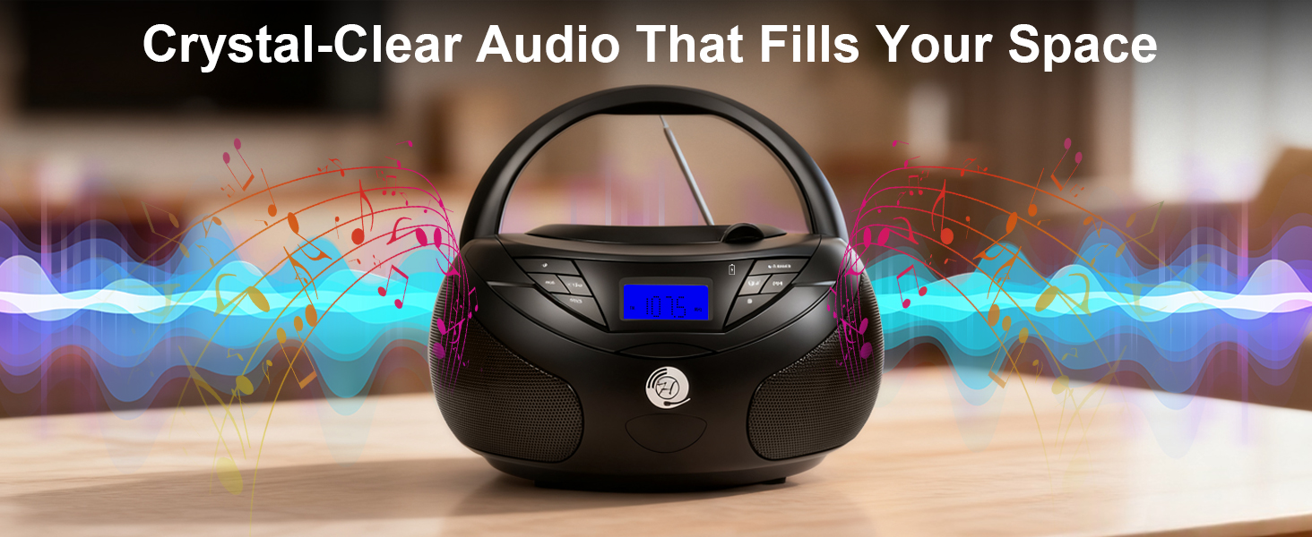 جودة صوت ستيريو غنية: اشعر بالدفء وقوة صوت ستيريو الحقيقي. يتميز مشغل الأقراص المضغوطة هذا بمكبرات صوت كبيرة مطورة وتصميم صوتي محسّن، ويوفر صوتًا عميقًا وأصواتًا واضحة ونغمات متوازنة. سواء كنت تستمتع بموسيقى الجاز الهادئة أو المقطوعات الكلاسيكية أو الألحان المبهجة، فإن كل صوت يأتي بشكل جميل وطبيعي.