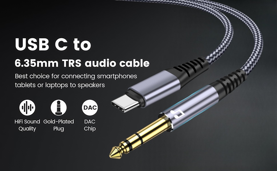 كابل ستيريو صوتي من USB C إلى 1/4 بوصة: فقط قم بتوصيل الهاتف الذكي أو الجهاز اللوحي أو أجهزة الكمبيوتر المحمولة مع واجهة إخراج منفذ USB-C للإشارة الصوتية إلى نظام هاي فاي المنزلي أو راديو ستيريو السيارة أو شريط الصوت أو مكبر الصوت أو الخلاط أو مكبر الصوت أو أي جهاز آخر مجهز بـ TRS مقاس 1/4 بوصة. يمكن أن تلعب الموسيقى. إنه الخيار الأفضل للقيادة والتجمعات العائلية واجتماعات المكتب وما إلى ذلك. (ملاحظة: تحذير!!!: لا يمكن لهذا المحول عكس الاستخدام مثل 6.35 ملم (1/4 بوصة) إلى USB من النوع C لتسجيل الصوت، مثل الجهير الكهربائي إلى iPad Pro 2020. يرجى ملاحظة ذلك!)