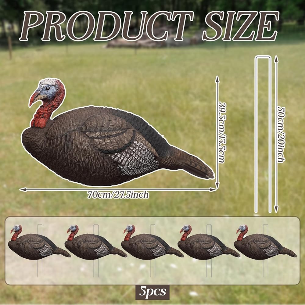Complete Decoy Set: you will receive 5 realistic turkey decoys, each equipped with a metal stand for easy setup; Plenty to create an effective and convincing spread