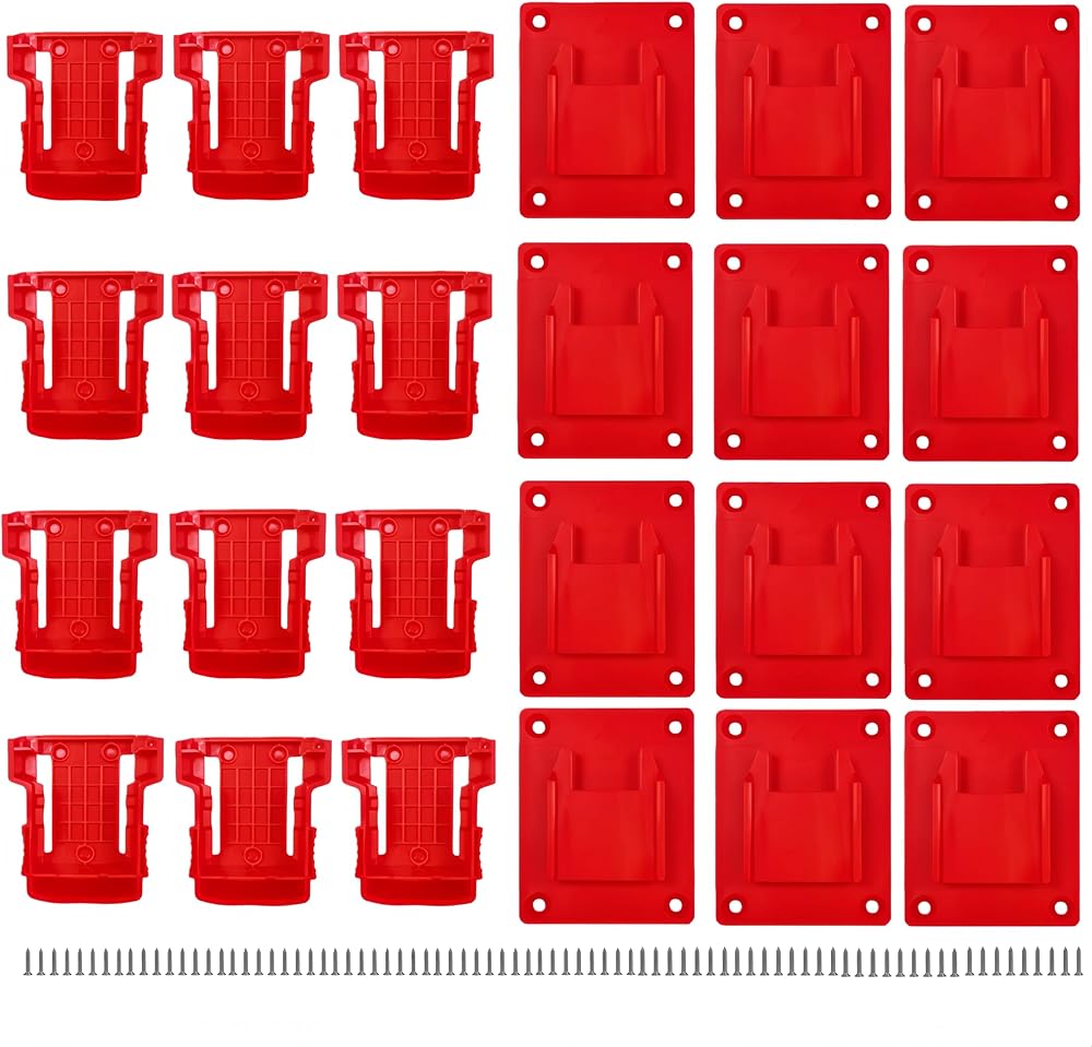 24 عبوة من حامل الأدوات وحزم البطاريات ودعامة التثبيت المتوافقة مع بطارية أداة ميلووكي M18 18 فولت، و12 قطعة من حوامل المثقاب و12 قطعة من بطاريات الأدوات مع مسامير