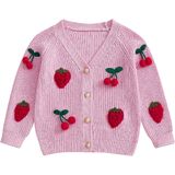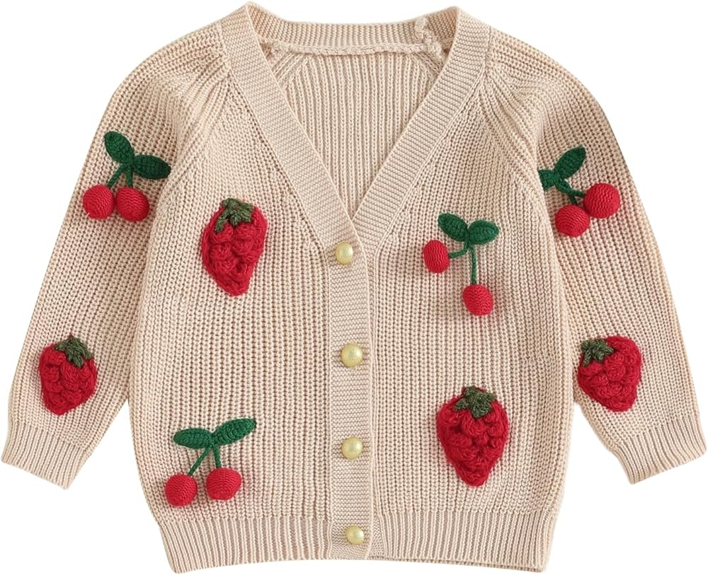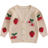 • Design: Fall winter sweater for baby girl; Long sleeve v neck cherry embroidery button up cardigan knitwear; Loose fit and skin-friendly