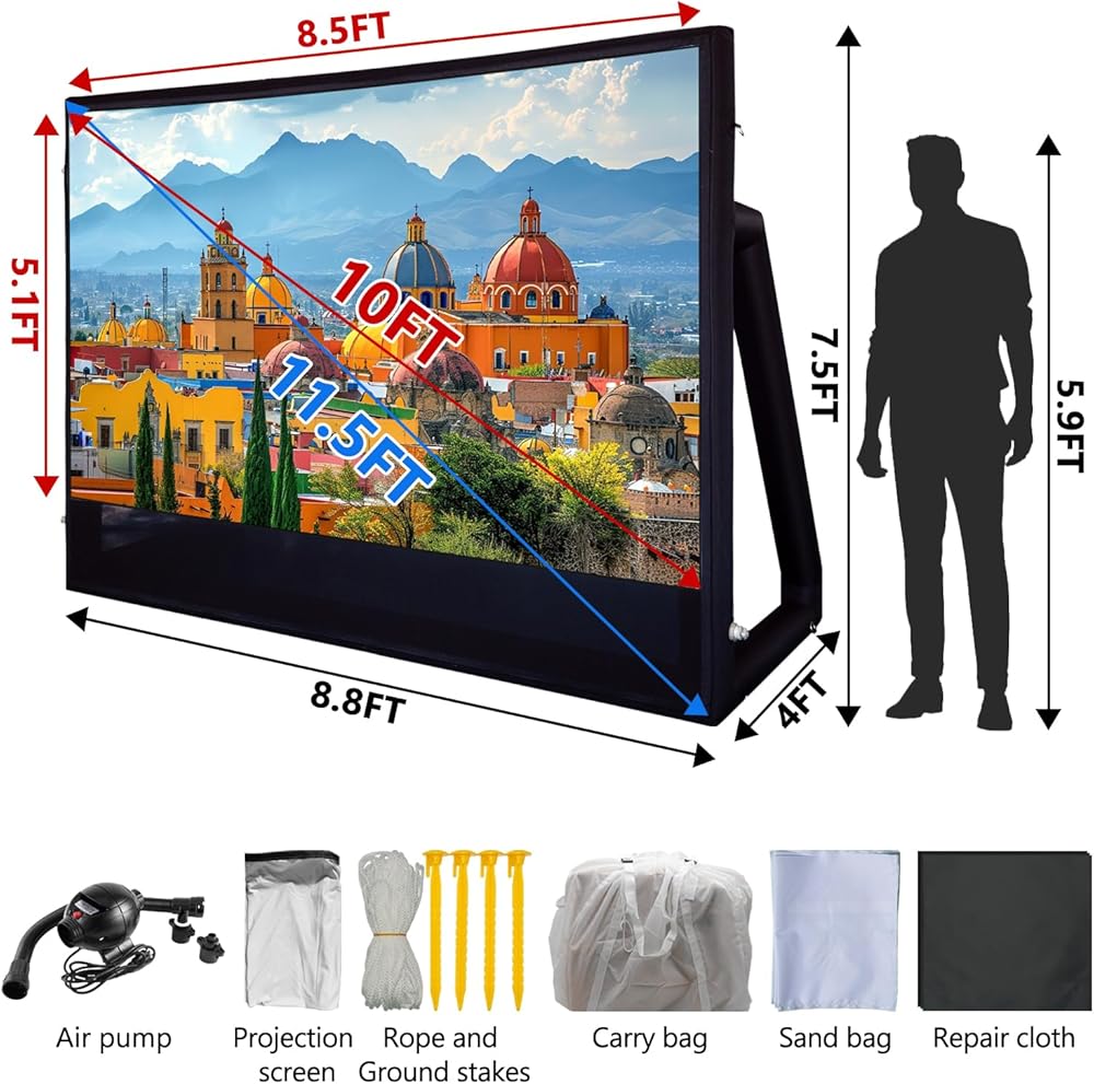 شاشة عرض قابلة للنفخ مقاس 11.5 قدمًا في الهواء الطلق - مادة PVC محكمة الغلق، مجهزة بمضخة هواء بقدرة 800 واط لحفلات الأفلام الليلية في الهواء الطلق، لا حاجة لتشغيل المنفاخ بشكل مستمر