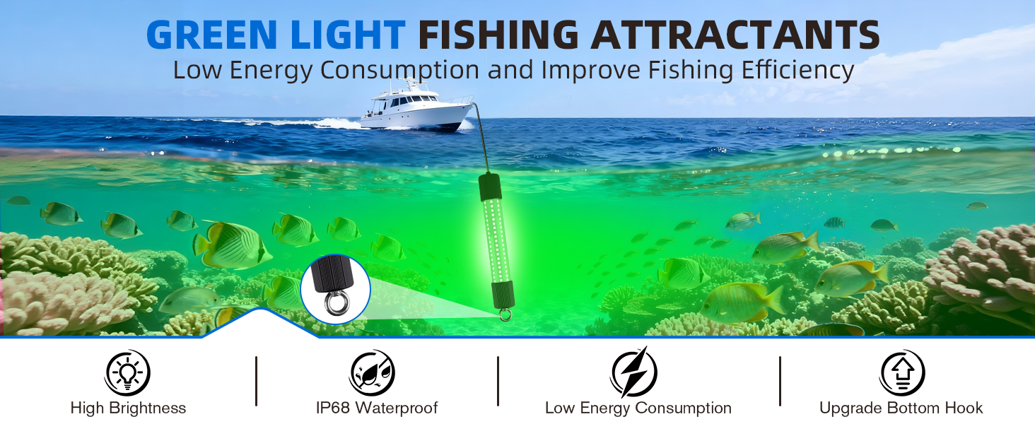 أداة جذب الأسماك متعددة الاستخدامات لمشاهد متعددة: قم بزيادة نجاحك في أي سيناريو. استخدم مصباح الصيد الأخضر متعدد الاستخدامات هذا كضوء سنوك، أو لصيد الأسماك في البنوك، أو كأضواء صيد ليلاً. يجذب تأثير ضوء الصيد تحت الماء ذو اللون الأخضر أنواعًا متنوعة، مما يجعله ضروريًا للأرصفة والقوارب وصيد الأسماك على الجليد