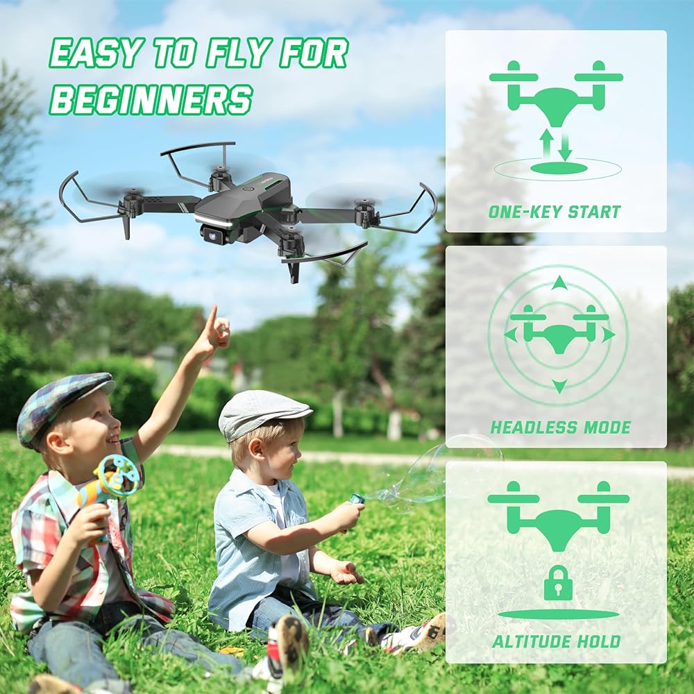 طائرة صغيرة رائعة للأطفال: من السهل جدًا البدء بمفتاح واحد للإقلاع/الهبوط، يحافظ تثبيت الارتفاع على تحليق الطائرة الصغيرة بدون طيار على ارتفاع ثابت. تحمي واقيات المروحة الطائرة بدون طيار من الاصطدام، مما يجعل الطائرة بدون طيار آمنة ومتينة للمبتدئين