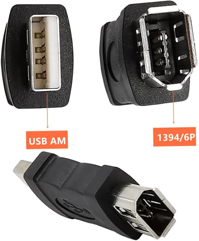 This 6 pin to USB adapter allows you to convert 1394 Firewire 6 pin to USB.