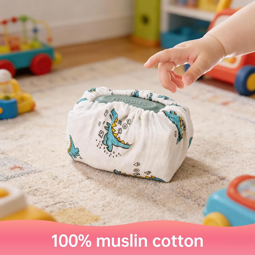 3 Pcs Muslin Cotton Baby Wipes Cover Set, Discover the softest way to shield.