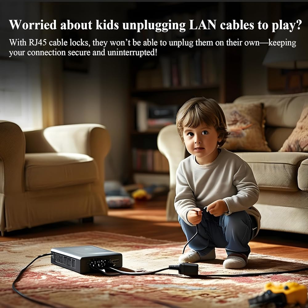 【قل وداعًا لفصل الكهرباء عن طريق الخطأ!】لا مزيد من حالات انقطاع الاتصال المحبطة! يحافظ قفل RJ45 الخاص بنا على الكابل الخاص بك في مكانه بشكل آمن، لذلك لن تقوم أنت (أو قطتك) بسحبه عن طريق الخطأ.🐱💻