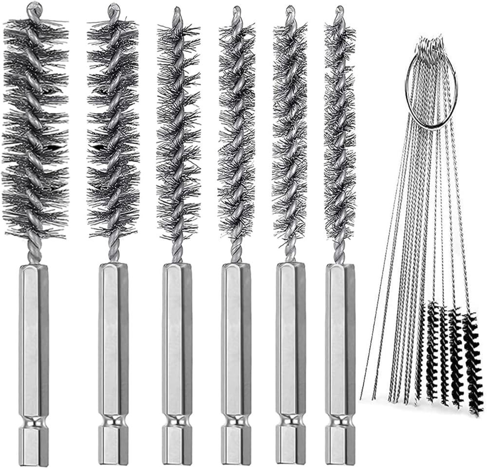 Packing List: 6 x stainless steel bore brushes with handle, 5 x nylon brush, 10 x cleaning needles tool.You can keep these brushes in your,car,garage,kitchen and office.Easy access into confined areas and narrow holes,which can be applied for tubes,ports,bearings,cylinders or other narrow areas that require cleaning.