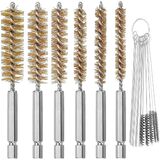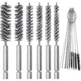 6 قطع من فرشاة التجويف المصنوعة من الفولاذ المقاوم للصدأ بأحجام مختلفة + 15 قطعة من إبر التنظيف وأدوات فرش النايلون، فرشاة سلك ملتوية بمقبض مجموعة مثقاب مرفقة بساق سداسية 1/4 بوصة لمحامل منافذ الأنابيب