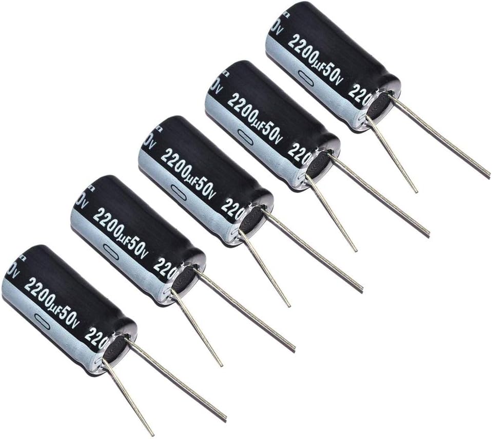 (عبوة من 5 قطع) مكثف 2200 فائق التوهج 50 فولت، مكثفات كهربائية من الألومنيوم PoiLee 2200 فائق التوهج 50 فولت 16x30 مم ±20% 105 درجة مئوية