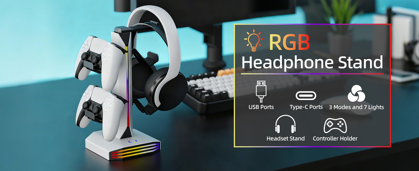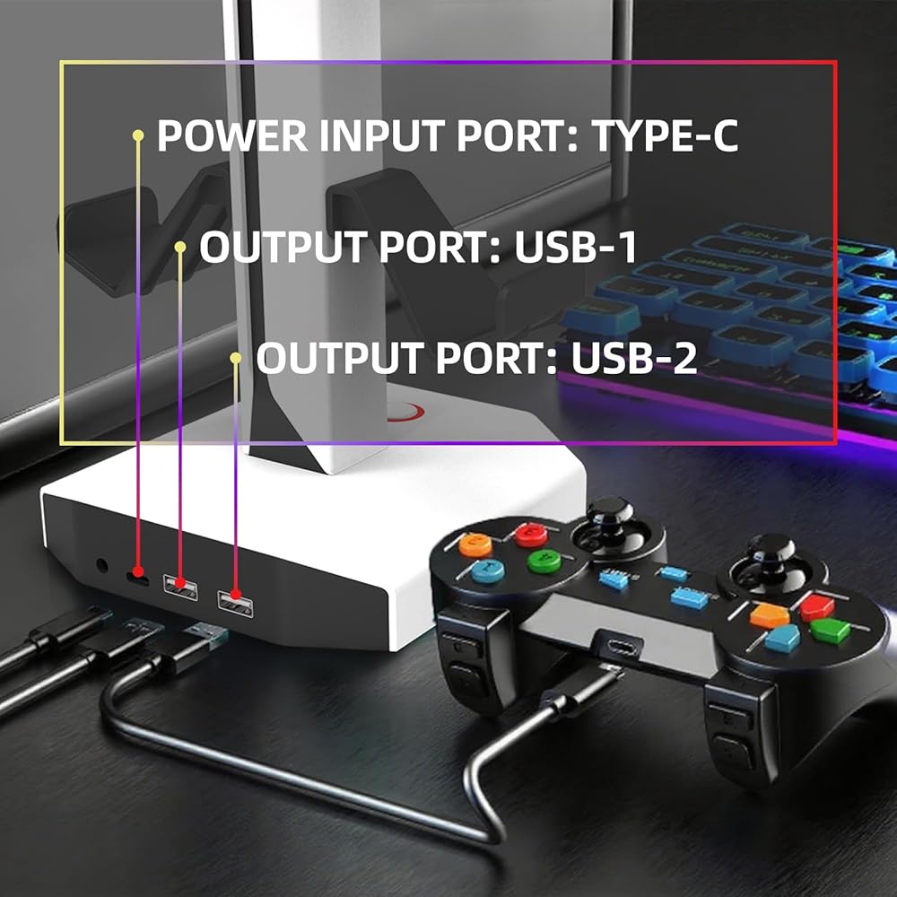 【خطاف تحكم قابل للفصل وحامل سماعة رأس قابل للدوران】 يمكن لملحقات مكتب الألعاب حمل سماعة رأس واحدة ووحدتي تحكم في نفس الوقت، أو أربعة وحدات تحكم في الألعاب. مناسبة لجميع أحجام سماعات الرأس ذات العلامات التجارية ومتوافقة مع مجموعة واسعة من وحدات التحكم نينتندو سويتش 2 وإكس بوكس وبلاي ستيشن 5 وبلاي ستيشن 4. يمكن أن يدور حامل سماعة الرأس بزاوية 360 درجة ومجهزًا بمنافذ USB وType C للاتصال السهل والمرن.