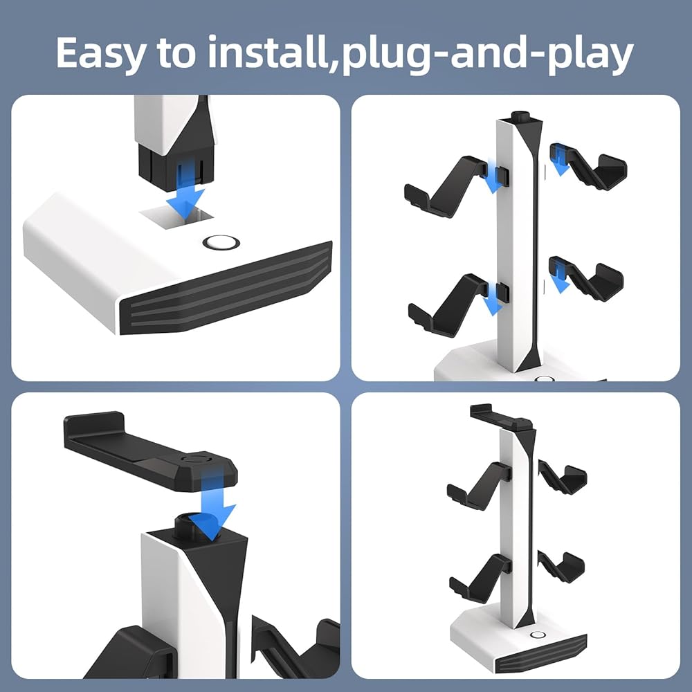 【سهلة التركيب وتصميم محمول】فقط قم بتجميع 3 أجزاء معًا في 30 ثانية، ثم يمكنك الحصول على حامل سماعة رأس أنيق وجميل. بعد ممارسة الألعاب، من المناسب وضع أو عرض سماعات الرأس وأجهزة التحكم، والحفاظ على مكتبك منظمًا. خطاف وحدة التحكم قابل للفصل، مما يجعله قابلاً للحمل.