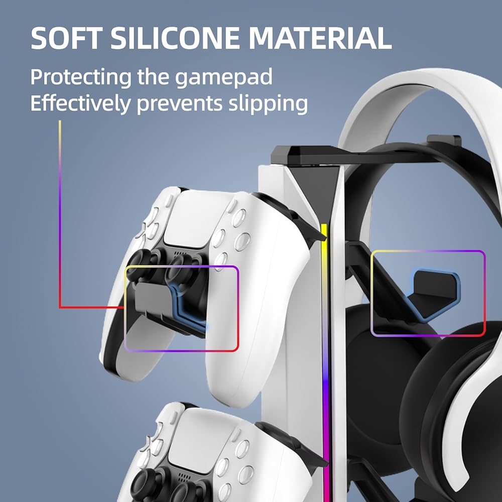 【تصميم قوي وأنيق】حامل سماعة الرأس الخاص بنا مصنوع من مواد عالية الجودة، ويضمن حامل سماعة الرأس هذا الثبات والمتانة. يضيف اللون الأبيض الأنيق لمسة عصرية إلى أي بيئة ألعاب.