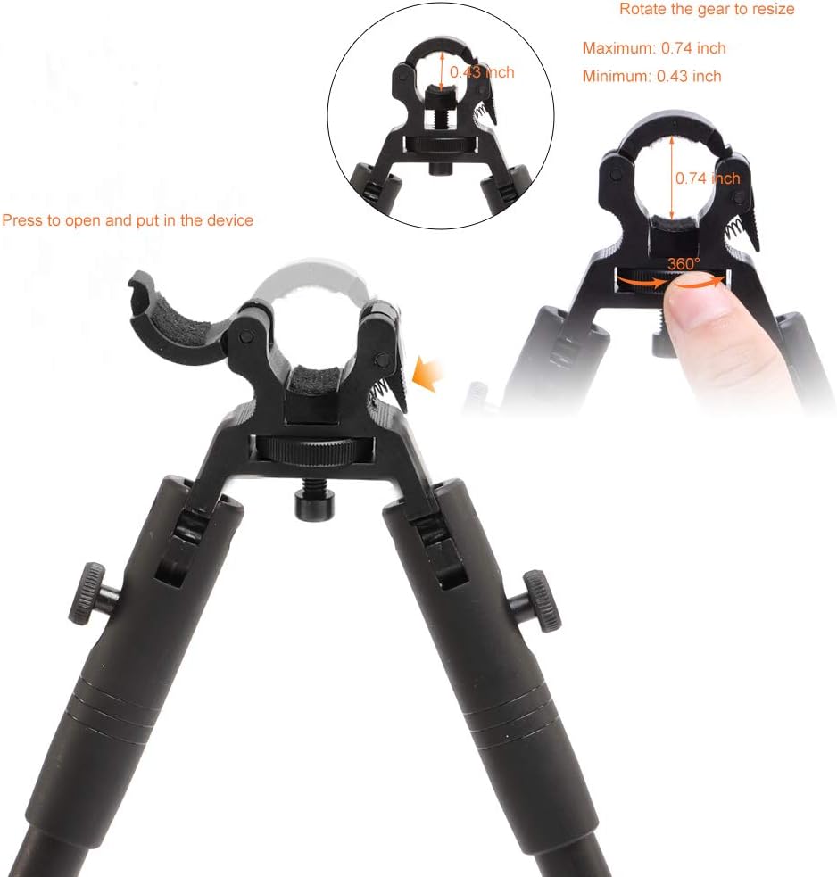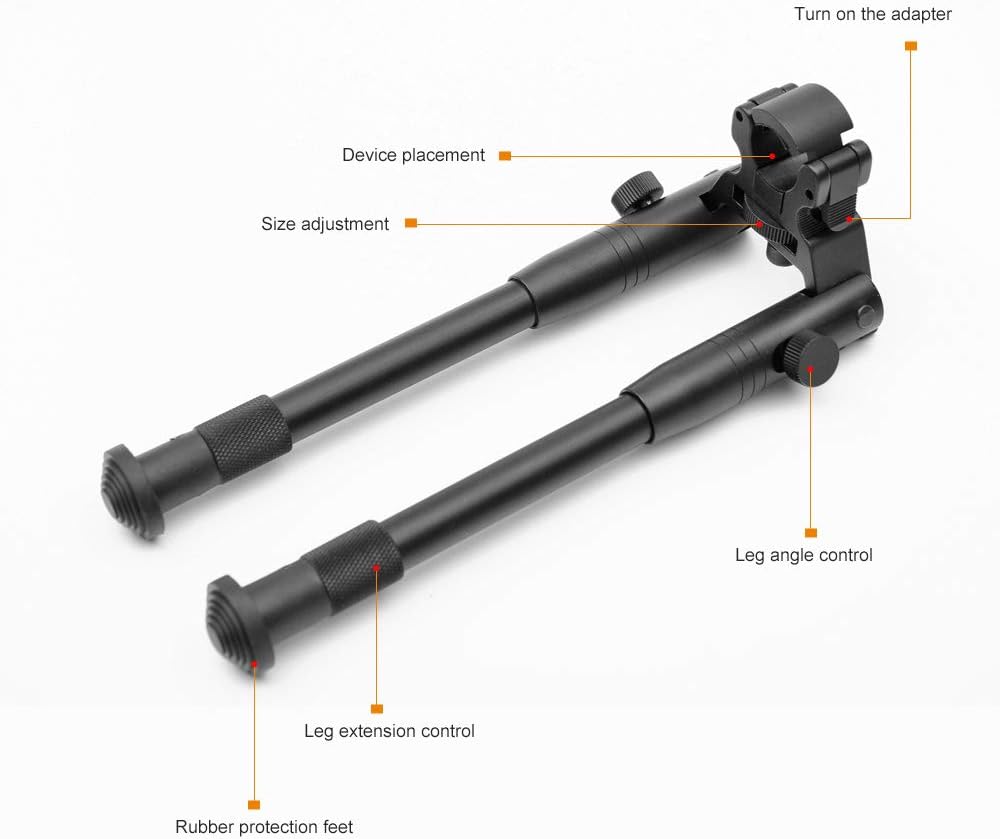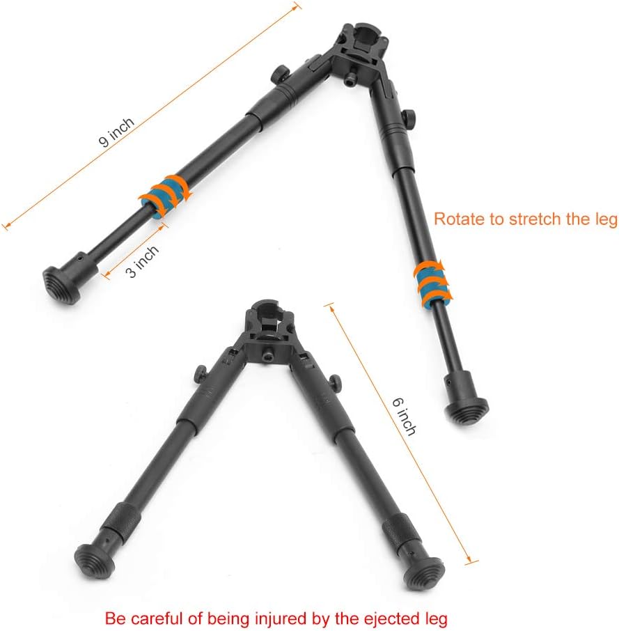 Adjustable and Foldable -Low-profile, foldable tactical bipod with adjustable height from 6 to 9 inches,foldable arms on rifle for easy carry and storage.The legs can be pulled out or shortened,
