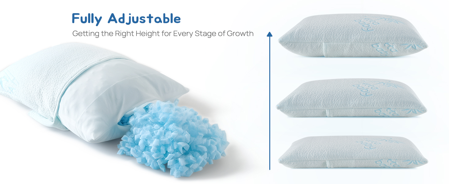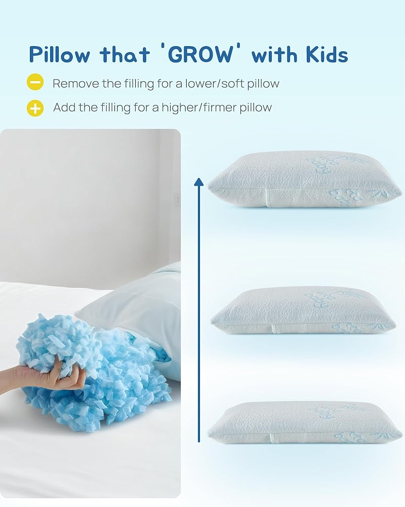 قابلة للتعديل لتناسب الأطفال الصغار: حشوة الإسفنج الذكي الممزق مرنة بشكل لا يصدق، لذلك يمكنك ضبط الارتفاع للحصول على المقاس المناسب لطفلك الصغير. للبدء، يمكنك ملاحظة وضع نومهم المفضل وقياس الفجوة بين الرأس والكتفين لتحديد الارتفاع المثالي للوسادة. بالنسبة للأطفال الصغار ذوي الأجسام النامية، من الضروري أن تتكيف وسادتهم مع احتياجاتهم المتغيرة، مما يعزز النمو الصحي للعمود الفقري.