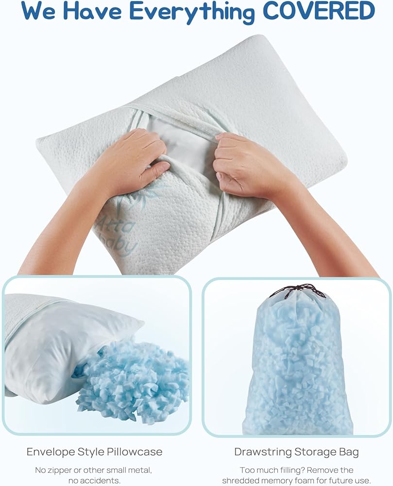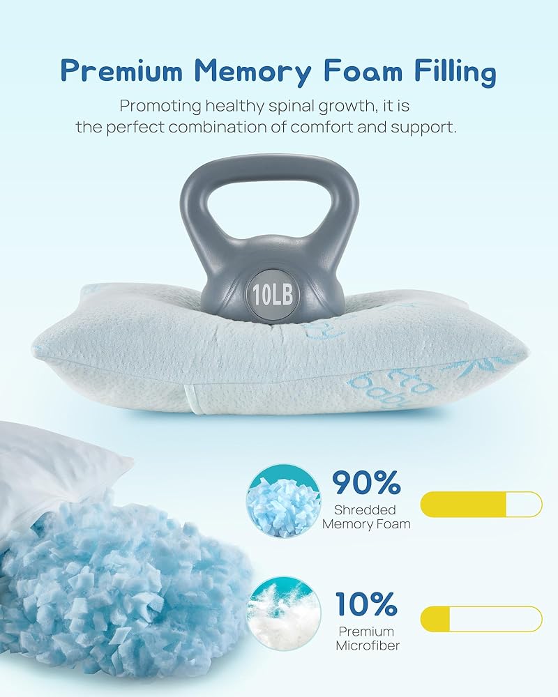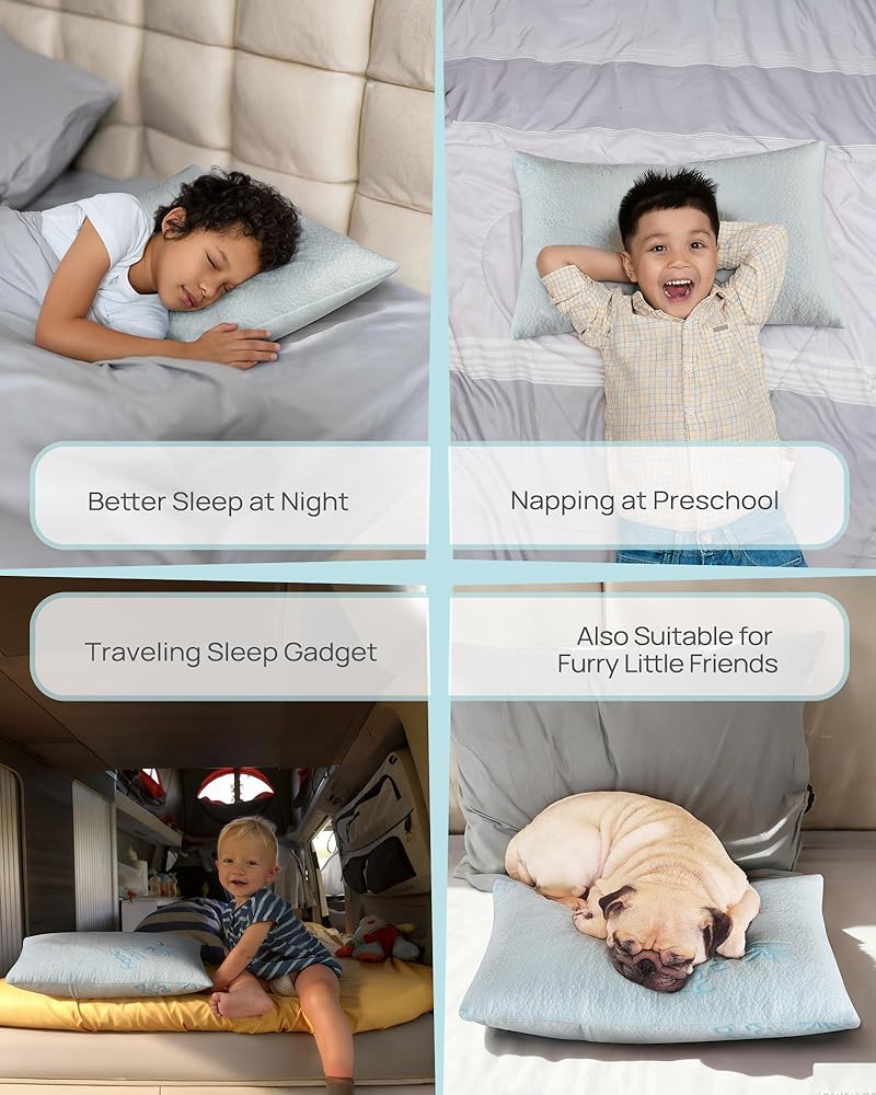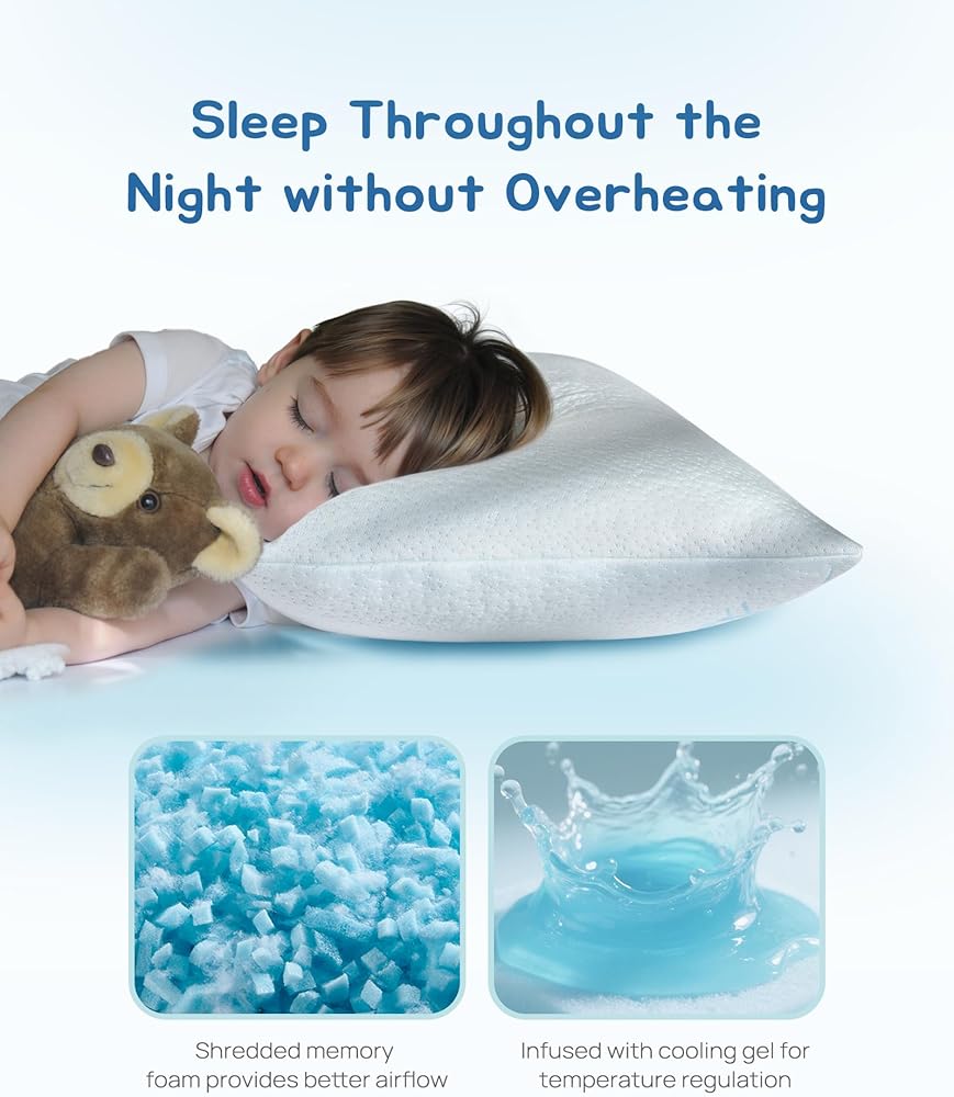 نعومة مسامية: سيحب طفلك الصغير هذه الوسادة! إنها مصنوعة من رغوة الذاكرة الممزقة ذات البنية الفضفاضة التي تسمح للهواء بالتدفق بحرية. صنع وسادة سرير فائقة النعومة وقابلة للتنفس للأطفال. ولا تقلق بشأن ارتفاع درجة الحرارة - فالإسفنج الذكي مملوء بجل تبريد للحفاظ على راحة الأطفال الصغار. لذا، سواء كانوا ينامون في غرفة نومهم، أو يأخذون قيلولة في المدرسة الإعدادية، أو حتى يسافرون في رحلة، فسوف ينامون بسلام وسلام!