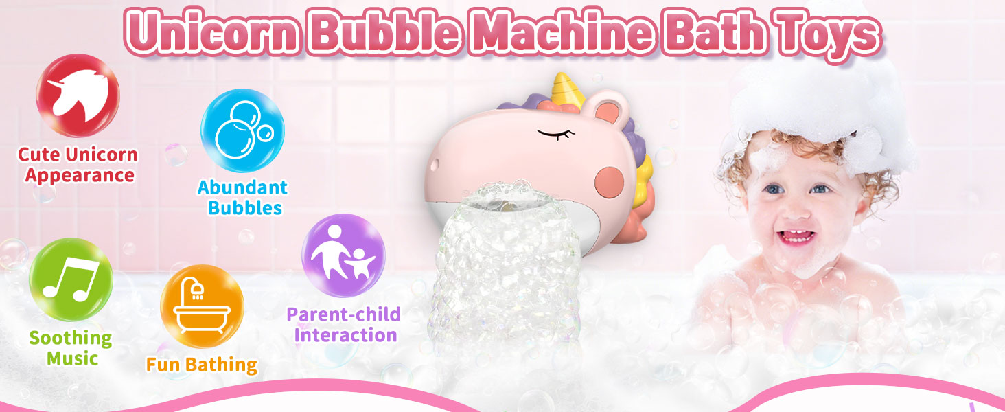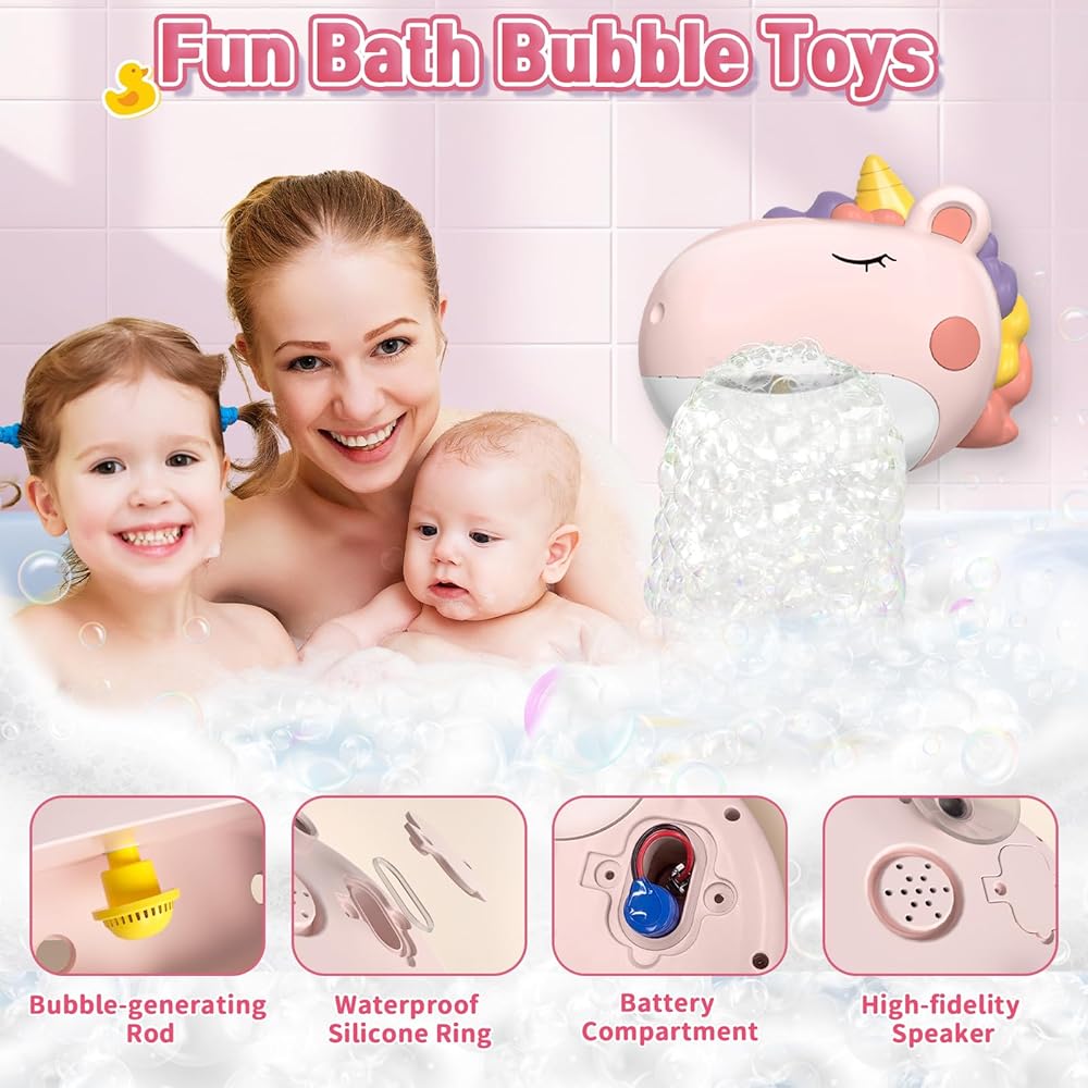 ألعاب حمام الطفل، آلة فقاعات الحمام يونيكورن، ألعاب حمام الأطفال الصغار للأطفال الذين تتراوح أعمارهم بين 1-3 و4-8 سنوات، حوض استحمام تفاعلي، ألعاب مائية، صانع فقاعات مع موسيقى، هدايا عيد الميلاد للأولاد والبنات