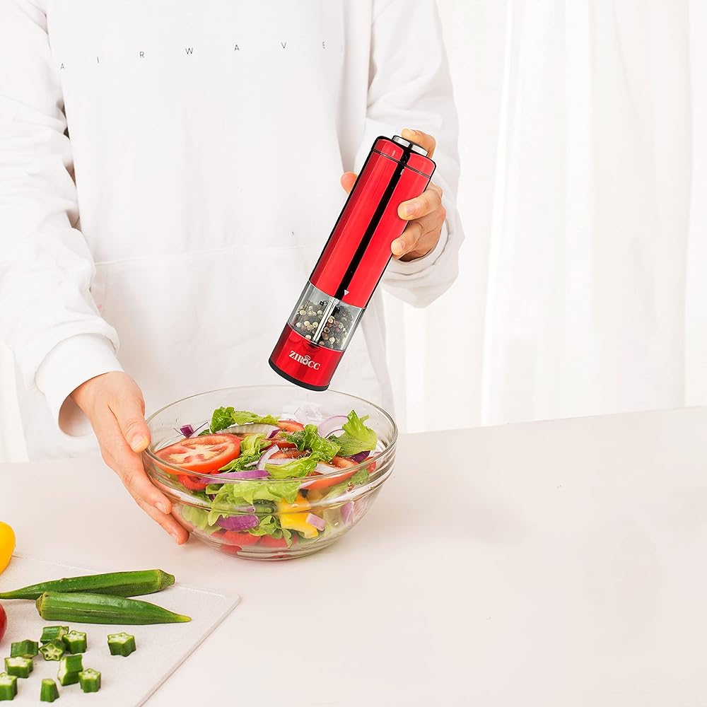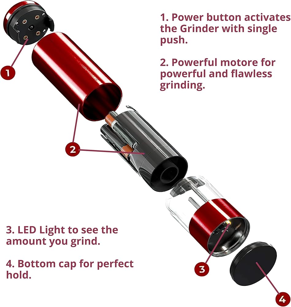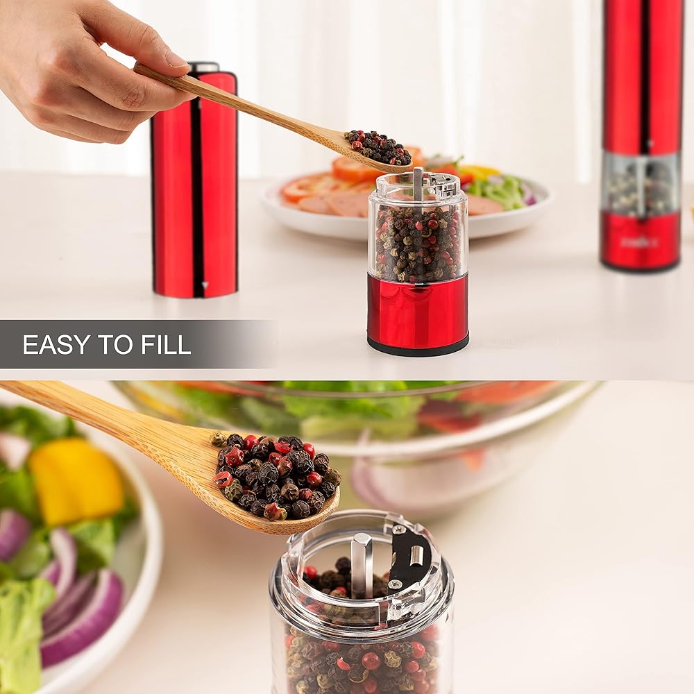 • هل تعاني من مشاكل البراعة؟ من خلال التشغيل المريح بيد واحدة، تضيء مطحنة الفلفل الأوتوماتيكية لتوزيع الملح الوردي أو الفلفل الأبيض من خلال ضمان هبوط مثالي للتوابل على طعامك؛ وهو مثالي للأشخاص الذين يعانون من التهاب المفاصل؛ النفق الرسغي، ومشاكل أخرى تتعلق بالبراعة. مع إعداد طحن قابل للتعديل من الخشن إلى الناعم للغاية، سيتم تتبيل كل وجبة إلى حد الكمال، وقد تم تصميم حركة الطحن لمطحنة الملح الخاصة بنا لتعمل بسلاسة ودون عناء مع زيادة النكهة إلى أقصى حد.