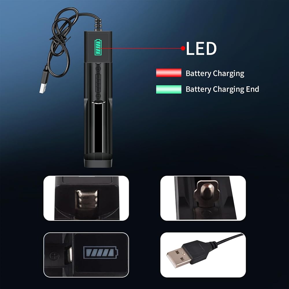 Universal Charger: Only charging for 3.7V Rechargeable Batteries. With indicator light, during charging in red light and fully charged in green light.
