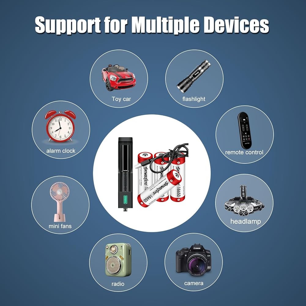 Wide Compatibility: charger set compatible for high power devices, such as headlamp, flashlight, radio, cameras, doorbells, LED lights, small fans, RC car, etc.
