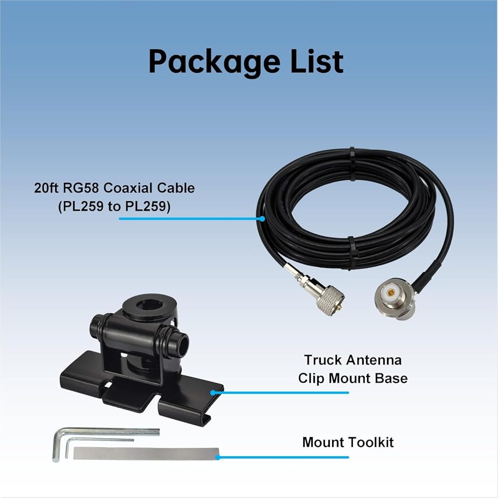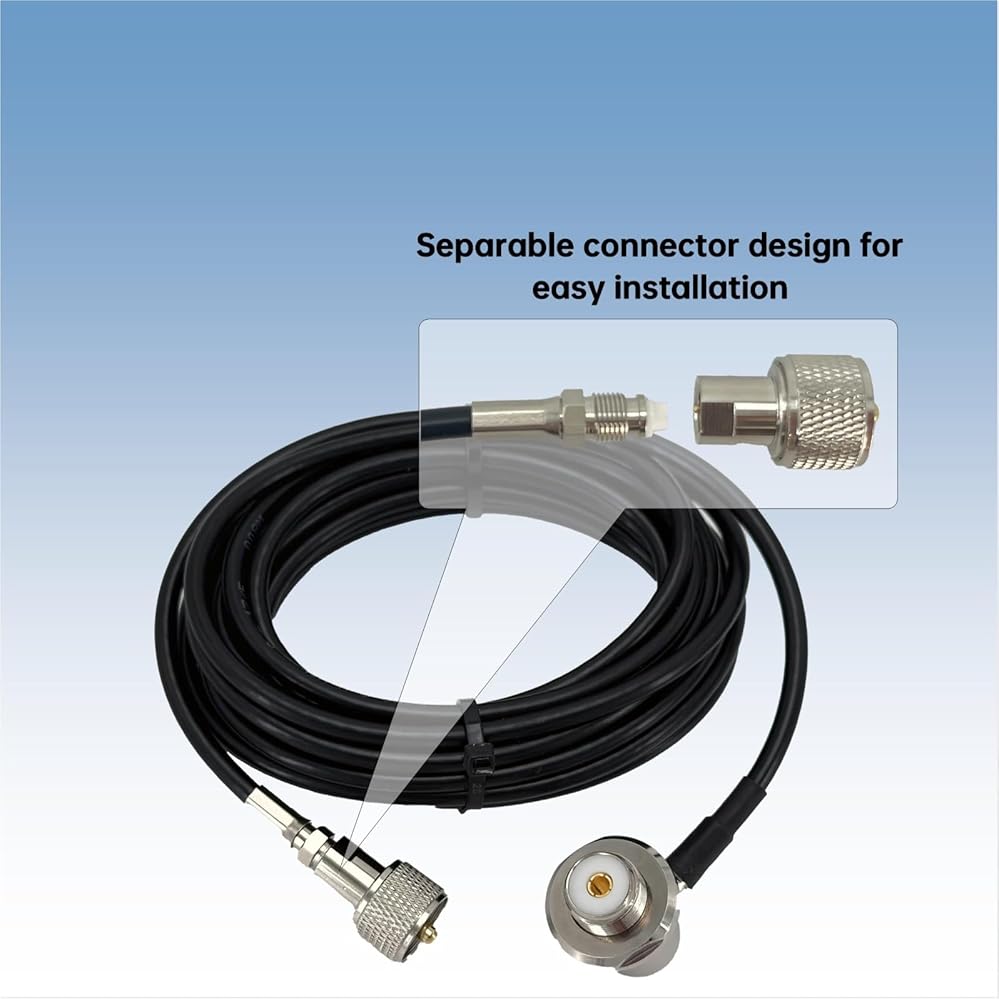 كابل عالي الجودة: يأتي مع كابل محوري RG58 منخفض الخسارة بطول 20 قدمًا يتميز بموصل PL259 قابل للفصل لسهولة تركيب السيارة وتوصيلها.