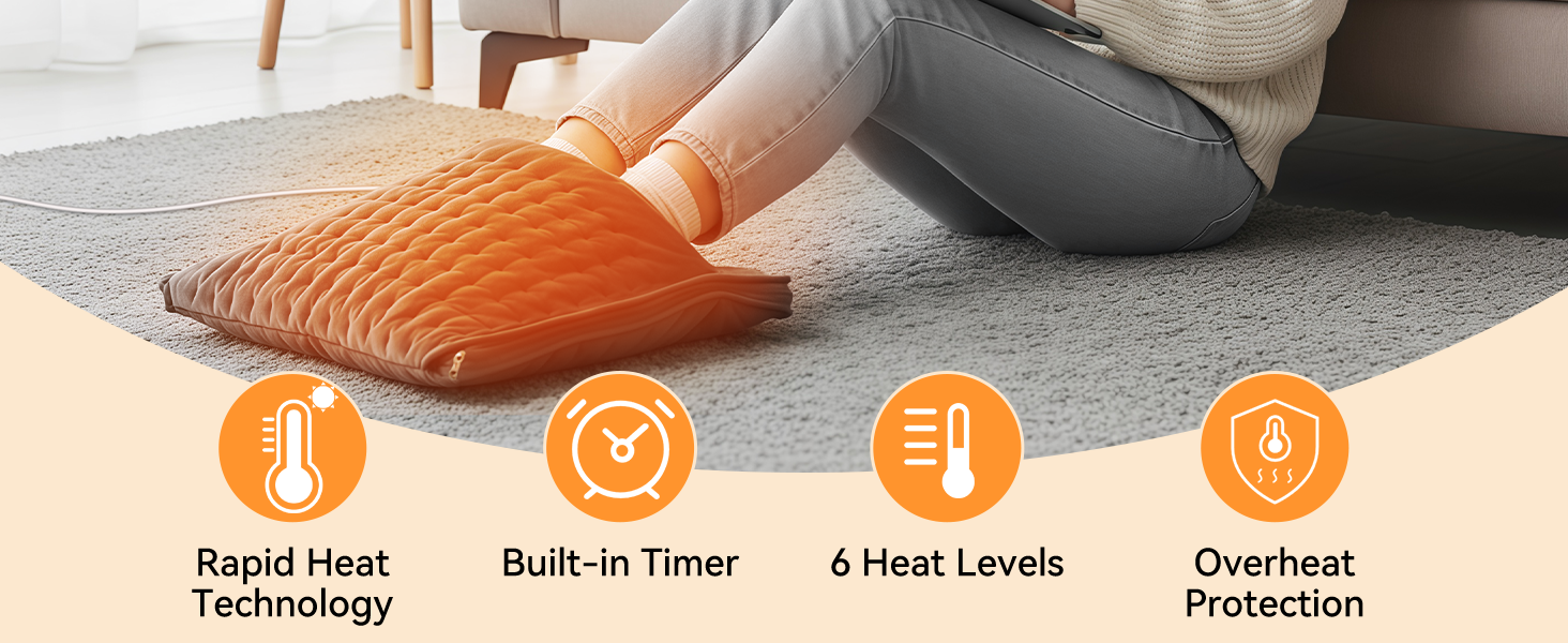 الحماية من الحرارة الزائدة والاستخدام متعدد الاستخدامات: تضمن الحماية المدمجة من الحرارة الزائدة التشغيل الآمن، بينما تعمل الحرارة المهدئة على تعزيز الدورة الدموية بشكل أفضل. استخدم وسادة التدفئة متعددة الأغراض هذه على سريرك أو أريكتك أو تحت مكتبك. اتركه لمدة 5-10 دقائق للتدفئة المسبقة للحصول على أفضل النتائج، وسوف تشكرك قدميك!