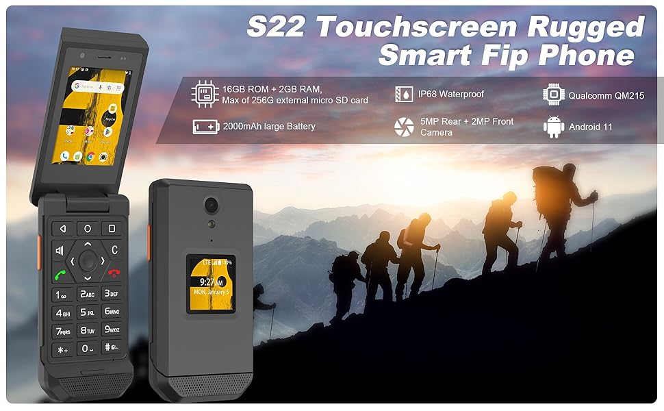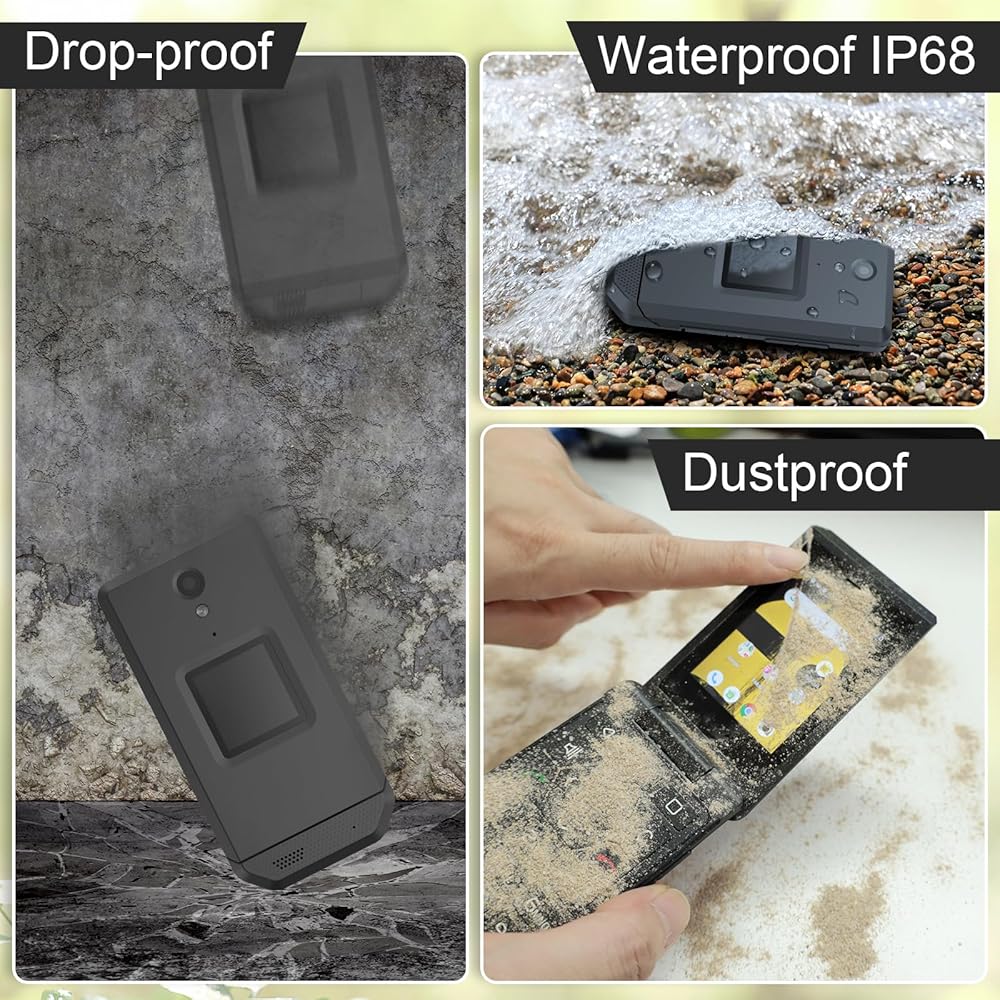 【تصميم متين وقوي】 يتميز هذا الهاتف الذكي القابل للطي بهيكل IP68 المقاوم للماء والغبار والسقوط، مما يجعله مقاومًا للبيئات الخارجية القاسية.