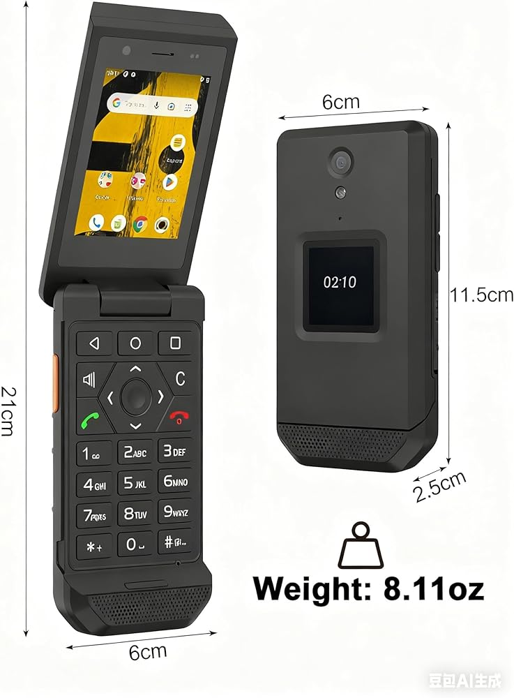 【أقوى مما كنت تعتقد】تم تصميمه كهاتف متين بتصنيف IP68، فهو مقاوم للماء والغبار ومقاوم للسقوط في البيئات القاسية. نظرًا لبنيته المتينة، فهو أكثر سمكًا وأثقل قليلاً من الهواتف القابلة للطي القياسية. الوزن: 8.11 أونصة (230 جم). الأبعاد: 6 × 11.5 × 2.5 سم (مطوية)، 6 × 21 × 1.2 سم (غير مطوية).