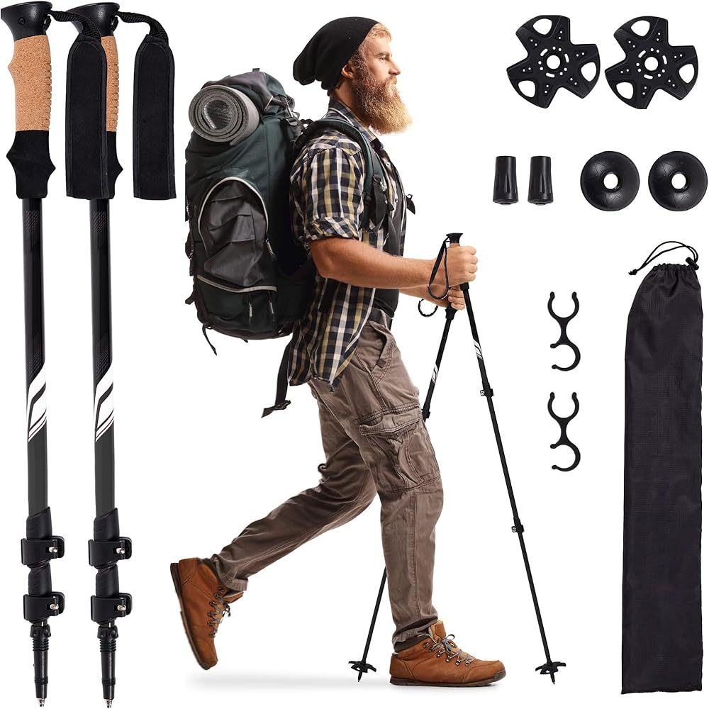 قبضة مريحة للرحلات الطويلة - مقابض الفلين الماصة للرطوبة تتشكل على يديك بينما توفر أحزمة المعصم المبطنة المزيد من الراحة. قل وداعًا للبثور والانزعاج أثناء المشي لمسافات طويلة