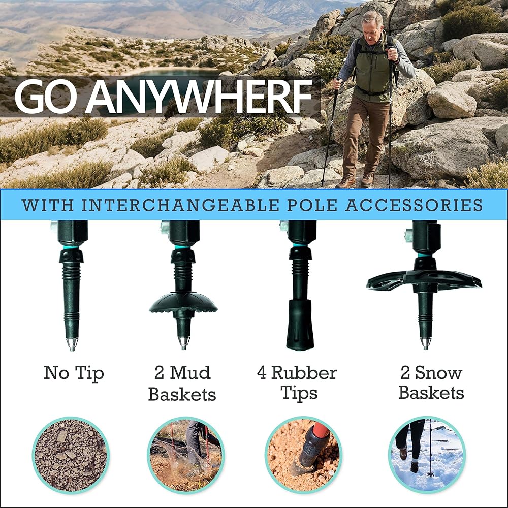 مصممة لجميع أفراد العائلة - أعمدة المشي لمسافات طويلة مصممة للمشاركة - رائعة للأطفال بعمر 7 سنوات فما فوق أو للأجداد الذين يحافظون على نشاطهم. خفيفة الوزن ولكنها قوية بما يكفي لكل جيل
