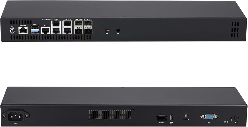 المنافذ: 5x2.5G LAN، 4x10G SFP+، 1RJ45 RS232، 1 Type C، 1 فتحة SIM Nano، VGA، 1xMini SAS، 1xUSB3.0، 1xUSB2.0