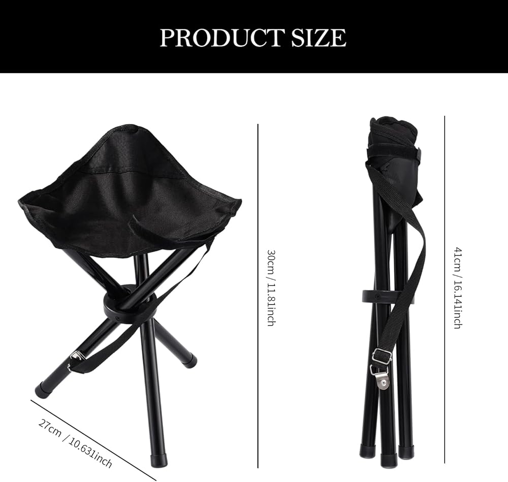 When folded, this outdoor camp stool measures 17.3"x3.1", and when opened, it's 10.8x10.8x10.8 inch with a height of 11.4". The ergonomic design offers a comfortable seating experience.