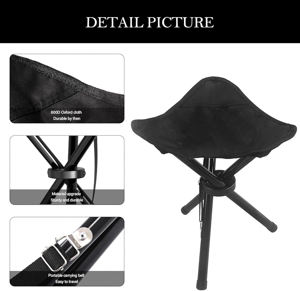 The portable chair is made of 600D Oxford fabric with a weight capacity of up to 220 pounds. The legs are crafted from thick metal, ensuring stable support, keeping the stool legs securely in place.