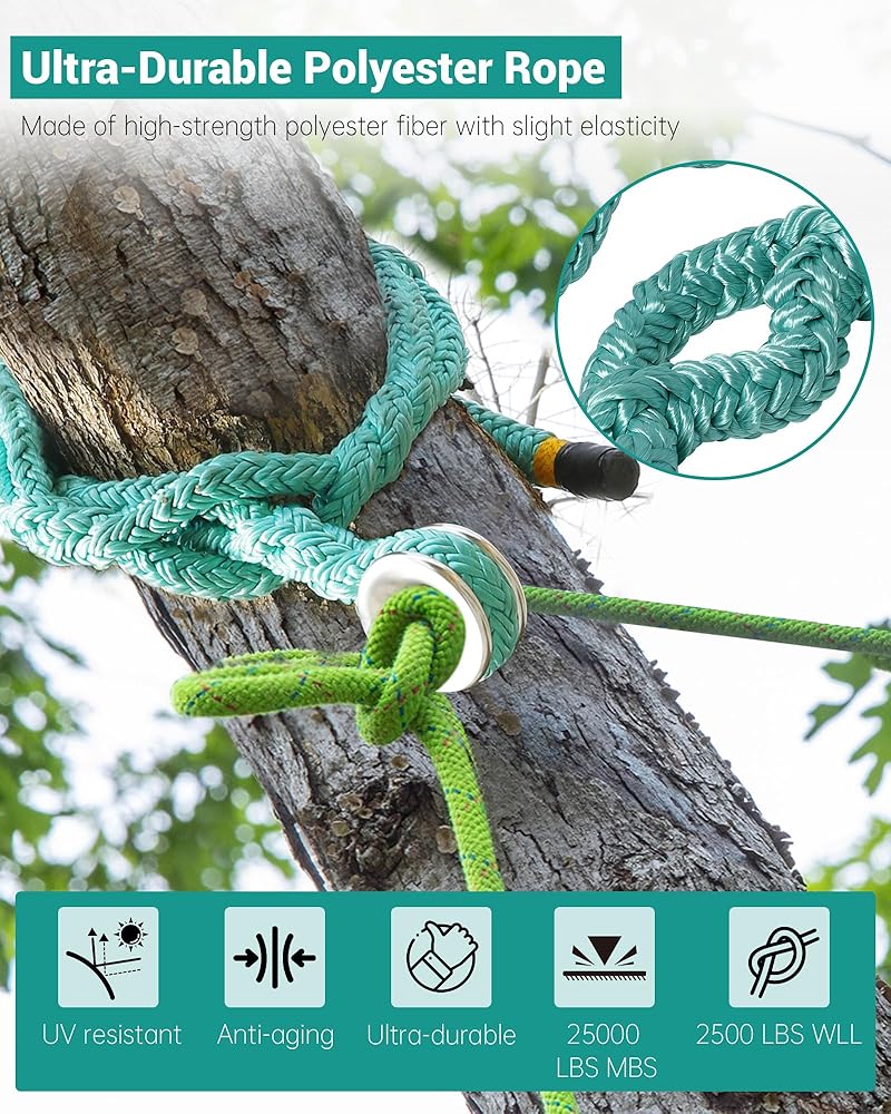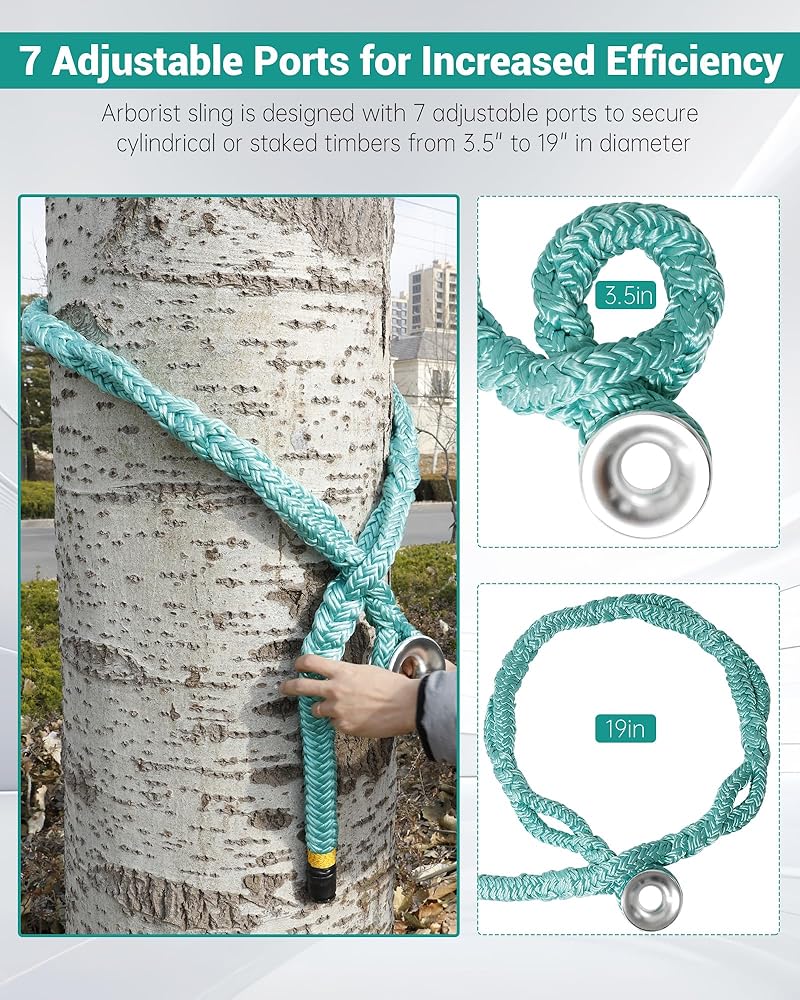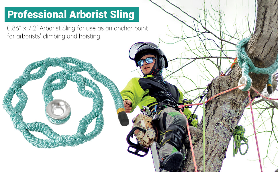 حبال التشجير الاحترافية: تم تصميم حبال التشجير مقاس 0.86 بوصة × 7.2 بوصة خصيصًا لعمال الأشجار. ويمكن استخدامها كنقطة ربط لعشاق الأشجار للتسلق والرفع، بالإضافة إلى حبال لتأمين الأوتاد والكتل
