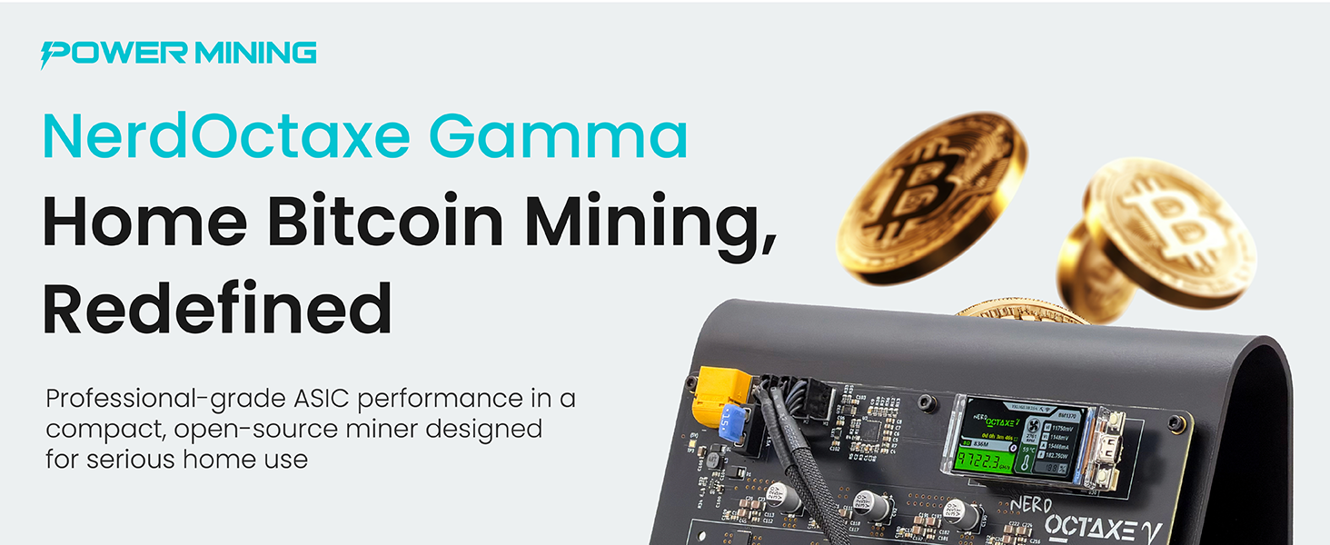 جهاز تعدين NerdOctaxe Gamma 9.6 TH/s Bitcoin ASIC - جهاز تعدين منزلي مفتوح المصدر مزود بـ BM1370 وWi-Fi وUSB-C ومجموعة كاملة ومصدر طاقة وحامل