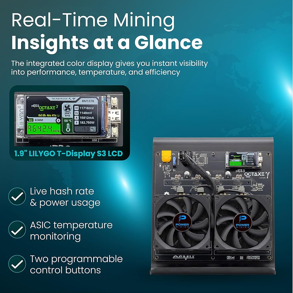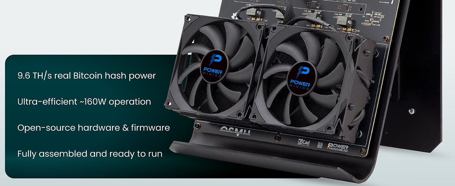 • ⚡ إجمالي معدل تجزئة يصل إلى 9.6 تيراهيرش/ثانية مع استهلاك طاقة يصل إلى 180 واط (~15 جول/تيرا هيرتز)، مما يوفر أداءً قويًا وفعالاً لتعدين البيتكوين في المنزل أو في بيئات المختبرات الصغيرة.