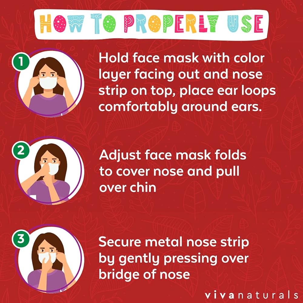 مع رغبة المزيد من الآباء في أن يرتدي أطفالهم أقنعة وجه للأطفال تستخدم لمرة واحدة، أردنا إنشاء قناع أطفال فاخر يمكن التخلص منه والذي سيكون مريحًا للارتداء والاستخدام اليومي، ولكنه يظل ناعمًا للغاية على البشرة. أقنعة الأطفال غير الطبية المكونة من أربع طبقات والتي يمكن التخلص منها مصنوعة من طبقات عالية الجودة من البوليستر غير المنسوج والبولي بروبيلين الذائب بالإضافة إلى حلقات أذن من النايلون والألياف اللدنة اللطيفة لمزيد من الراحة أثناء فترات الارتداء الطويلة. شريط أنف معدني قابل للتعديل على هذه الأقنعة المغلفة بشكل فردي والتي يمكن التخلص منها يجعل من السهل الحصول على ملاءمة مثالية لمعظم الوجوه ويساعد على تقليل ضباب النظارات! يمكن لأطفالك الصغار ارتداء أقنعة Viva Naturals غير الطبية بشكل مريح لجميع الأنشطة الداخلية والخارجية.