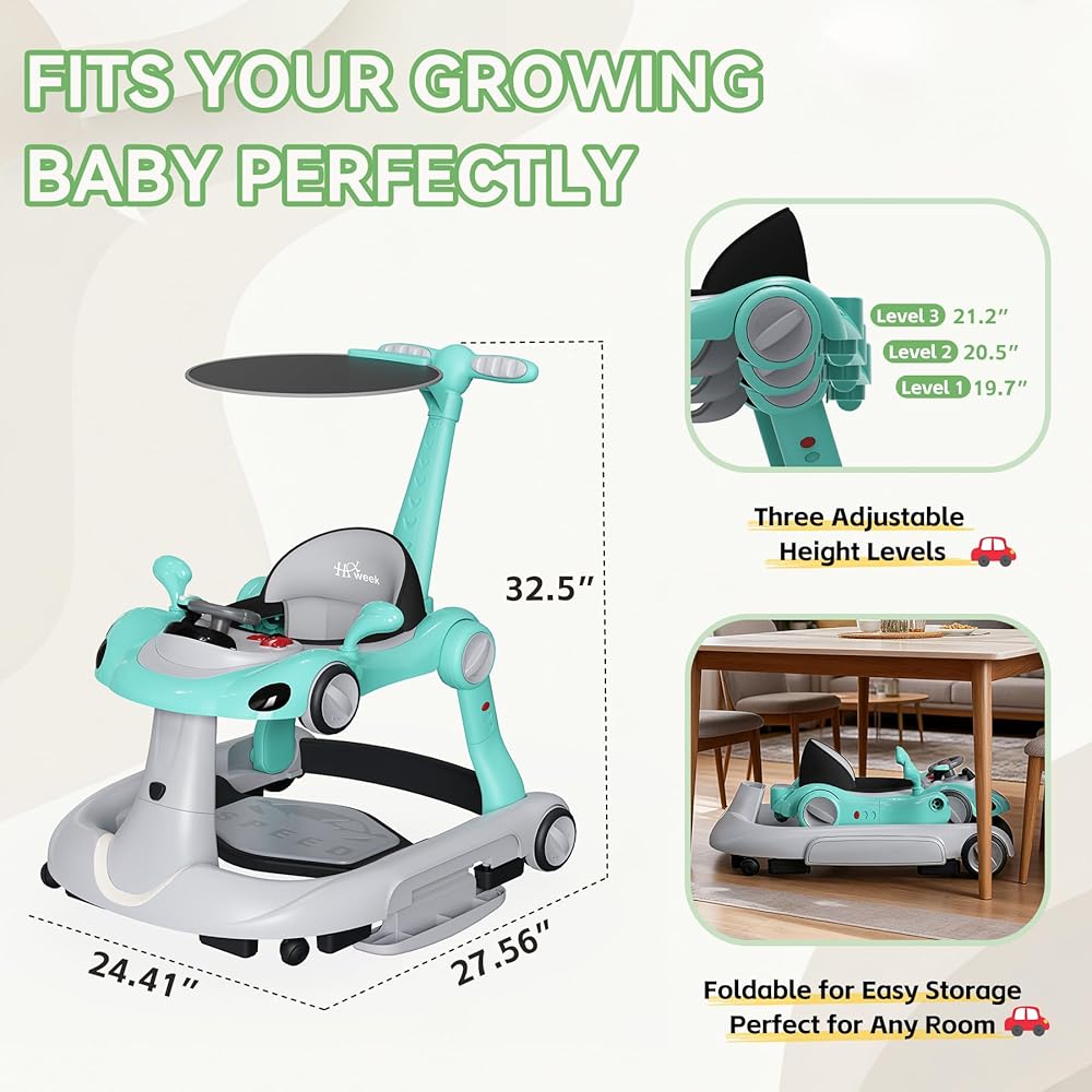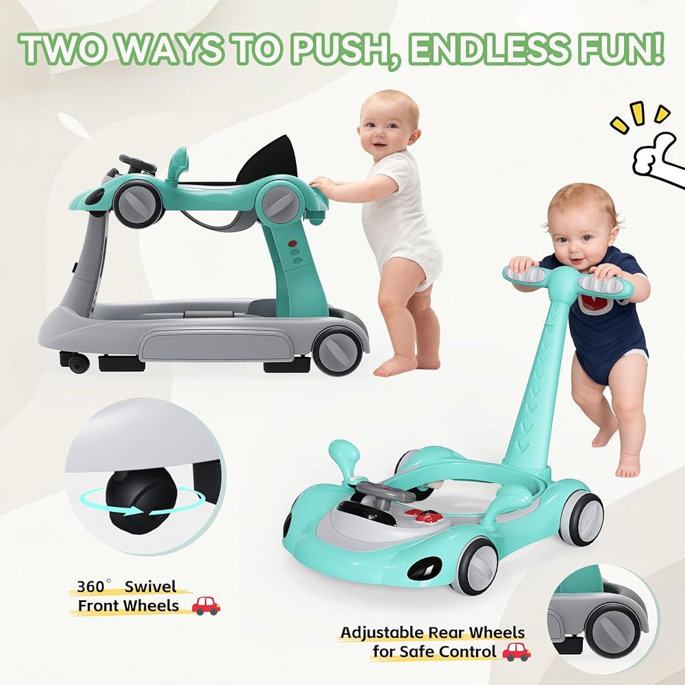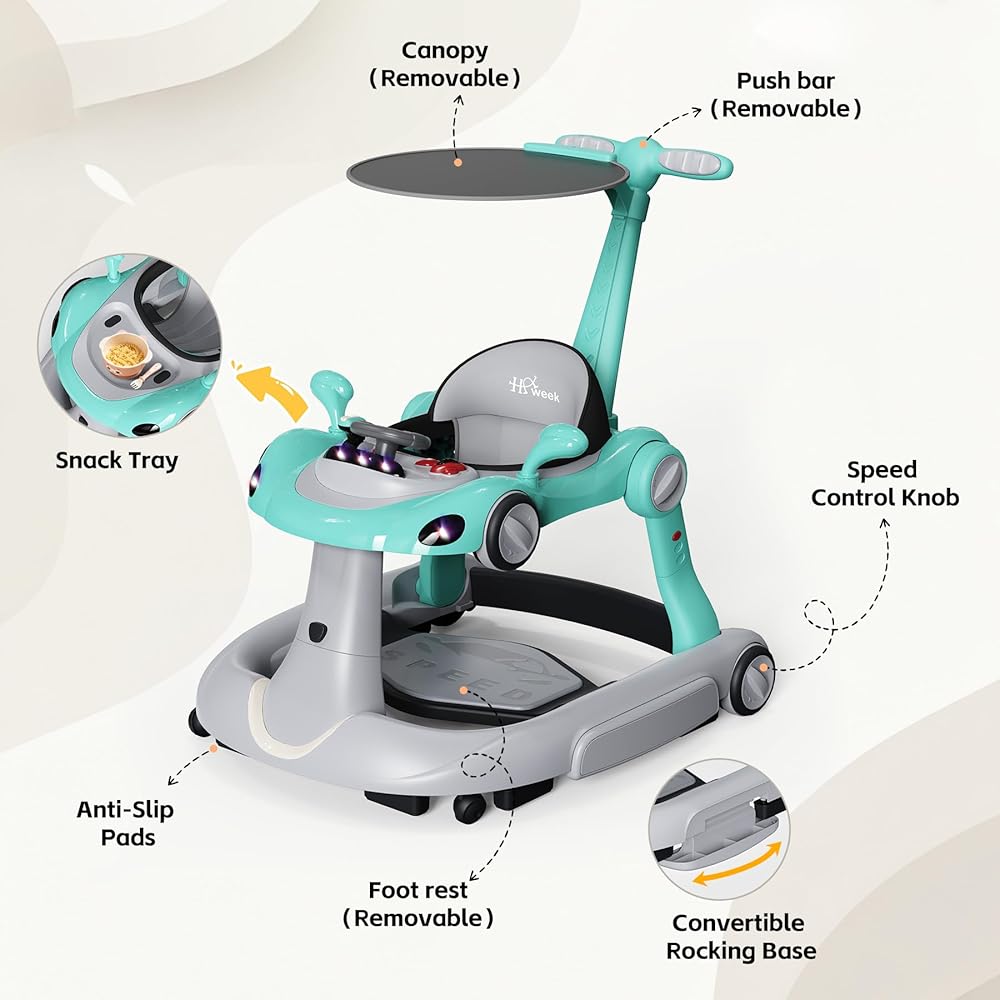 مشاية أطفال - تصميم متعدد الوظائف: تتميز بوظائف 7 في 1 بما في ذلك وضع المشاية، وصينية التغذية، والترفيه الموسيقي، ومظلة للحماية من الشمس، ودواسة ارتداد، ووضع العربة، ووضع الكرسي الهزاز.