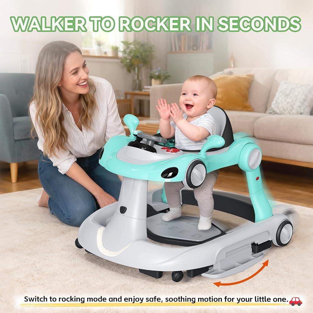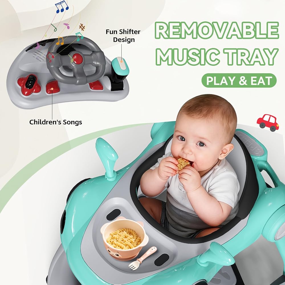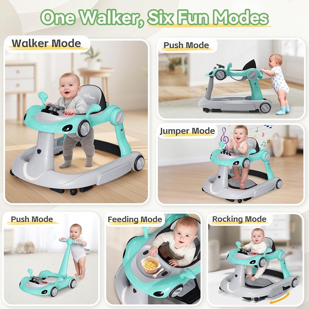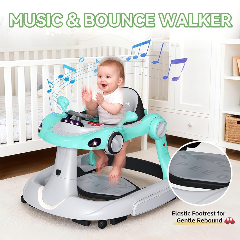مشاية أطفال - تصميم متعدد الوظائف: تتميز بوظائف 7 في 1 بما في ذلك وضع المشاية، وصينية التغذية، والترفيه الموسيقي، ومظلة للحماية من الشمس، ودواسة ارتداد، ووضع العربة، ووضع الكرسي الهزاز.