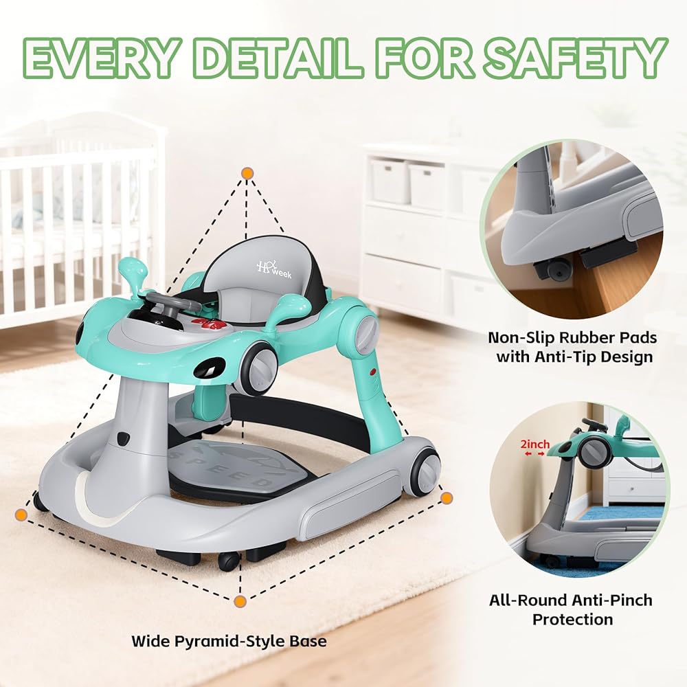 عجلة كتم الصوت وعجلة مقاومة للفرامل: مشاية أطفال من Haweek مع وسادات قدم مضادة للانزلاق وعجلة مقاومة للفرامل، العجلة الأمامية عبارة عن عجلة عالمية تدور بحرية 360 درجة، وهي ناعمة جدًا. اسمح للطفل بالتحرك بحرية. تأتي العجلات الخلفية مزودة بوظيفة فرامل مدمجة أيضًا: يمكنك ضبط مقاومة الفرامل يدويًا للوصول إلى السرعة المناسبة فقط، والأفضل من ذلك كله، أنها عجلات صامتة - لا تصدر صرير، ولا توجد فرصة لإزعاج الأسرة. بالإضافة إلى ذلك، تمنع ست وسادات قدم مضادة للانزلاق الانزلاق والسقوط، مما يحافظ على ثبات كل خطوة وآمنة.