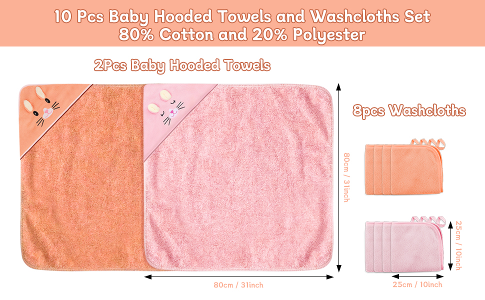تحتوي هذه المجموعة ذات الحجم العلمي على 10 مناشف حمام، ومنشفتين بغطاء للرأس، و8 مناشف يد، تلبي احتياجات الأطفال من حديثي الولادة إلى الأطفال الصغار. تتميز منشفة الحمام بنمط أرنب لطيف، مما يلهم اهتمام طفلك بالاستحمام ويجعل الصور أكثر جاذبية.