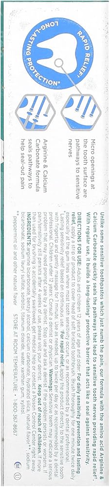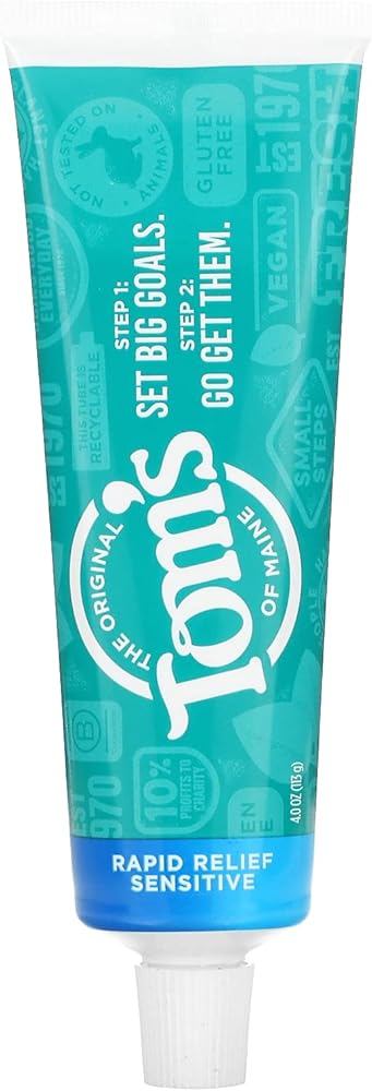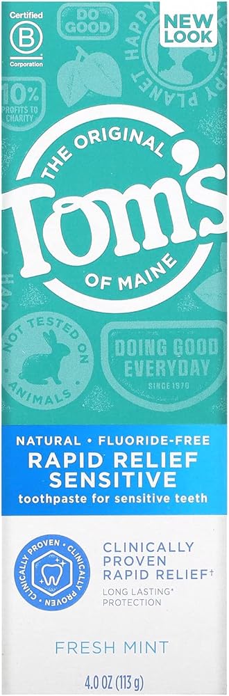 • يساعد على منع تراكم الجير: معجون أسنان تومس اوف ماين ناتشورال رابيد ريليف خالي من الفلورايد يحمي ويخفف الأسنان الحساسة. توفر تركيبتنا حماية وراحة تدوم طويلاً في 60 ثانية. لتحقيق راحة سريعة، ضع معجون الأسنان الحساس هذا مباشرة على الأسنان الحساسة بأطراف أصابعك أو فرشاة أسنانك ثم دلكه بلطف لمدة دقيقة واحدة.