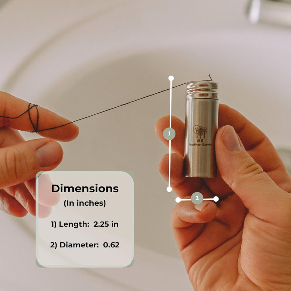 • AFTER THE SUCCESS OF OUR BAMBOO CHARCOAL FLOSS IN GLASS CONTAINER KIT NOW YOU CAN BUY THE NEW OPTION OF THE FLOSS IN THIS BEAUTIFUL STAINLESS STEEL CONTAINER. WE SELL IN CRAFT FAIRS AND ARTISAN MARKETS NOW ON AMAZON - Feel guilt free buying the best Biodegradable VEGAN Bamboo Charcoal Dental Floss with Refillable Stainless Steel Container + Extra Refill - Natural Candelilla Wax and Peppermint Essential Oil. Floss length is 33yds x2 from a Family Owned Company who really helps the environment.