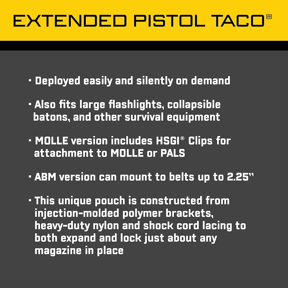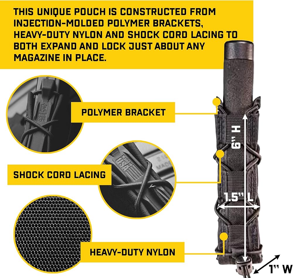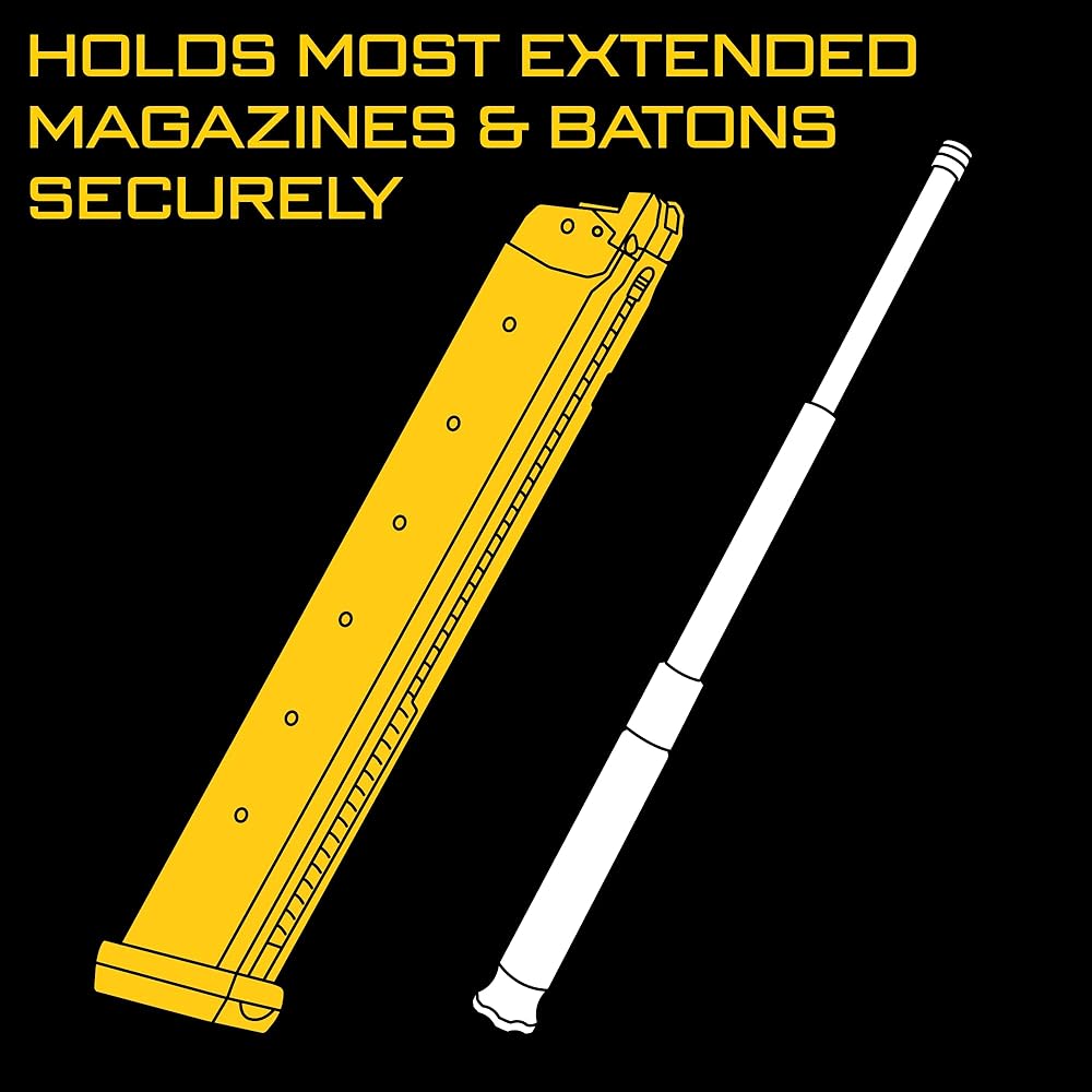 LIGHTWEIGHT AND LONG: Measuring 1"L x 1.5"W x 6.25"H, and weighing 0.12 lbs, it holds longer items such as batons, flashlights, or extended magazines. There's an open top for speedy draws.